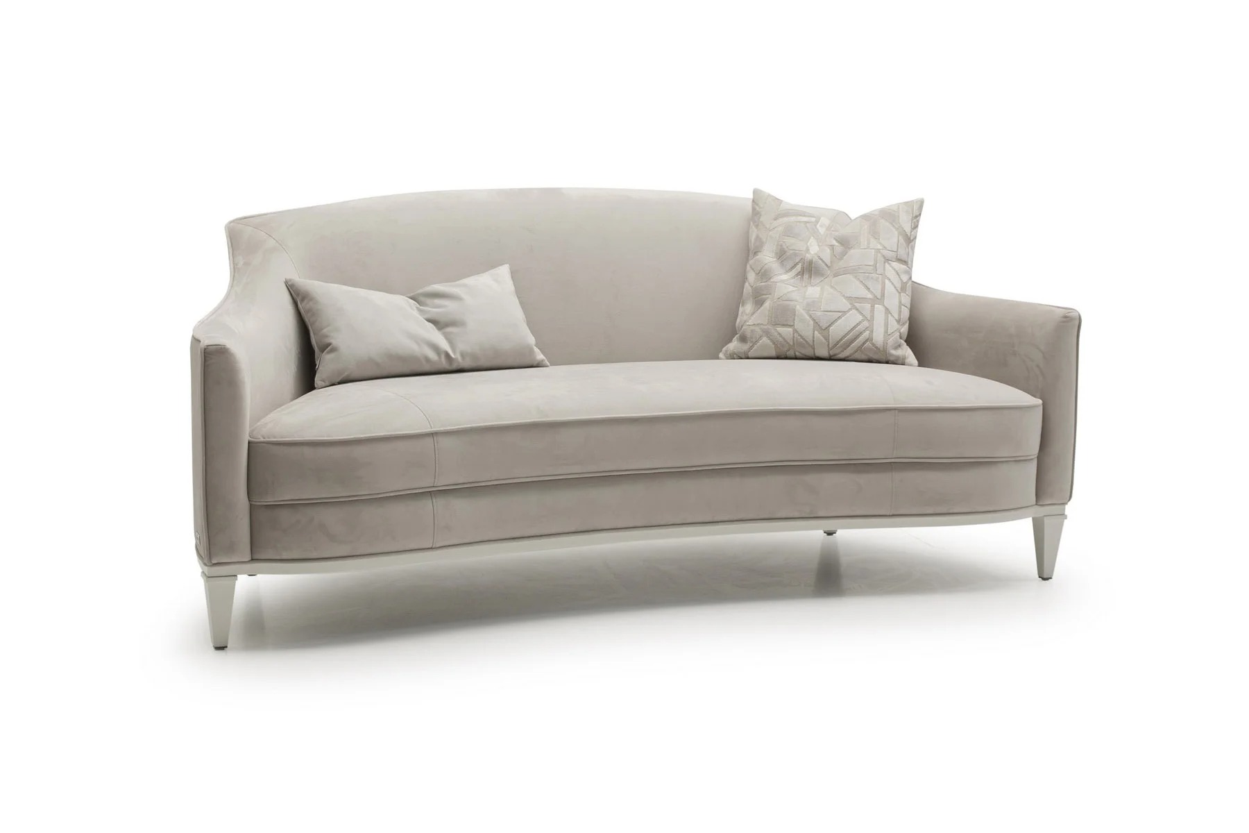 Изогнутые углы дивана контрастируют с плавными линиями, что позволяет создать индивидуальный характер мебели. Непревзойденная мягкость наполнителя из пера и пенополиуретана делает этот диван подходящим для отдыха наедине или в кругу друзей. Также очаровывают фигурные ножки из массива дерева, которые можно затонировать в соответствии с вашими пожеланиями. Есть возможность выбрать из множества вариантов обивки.
