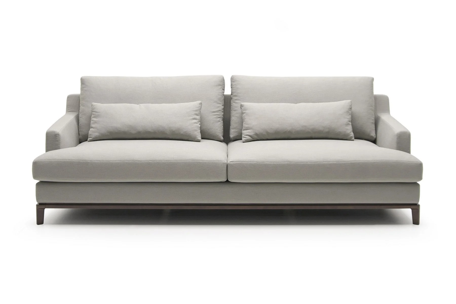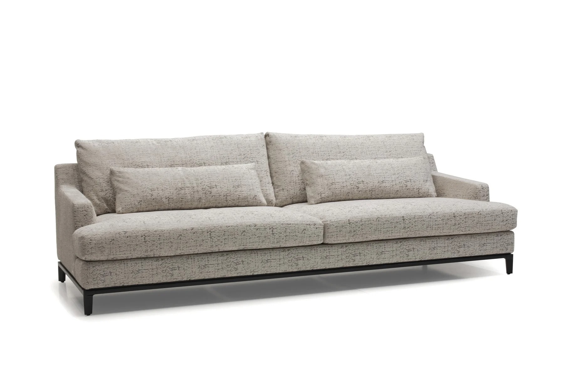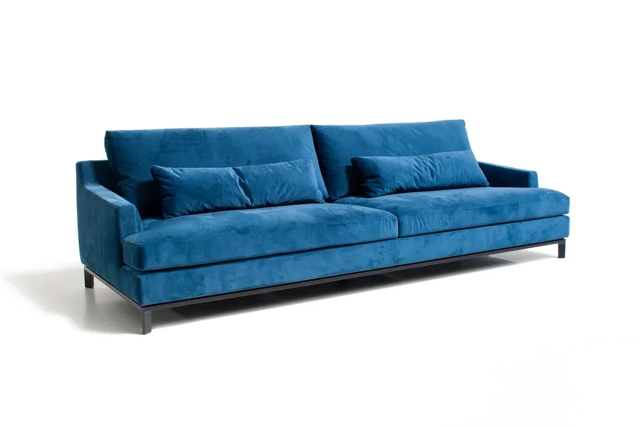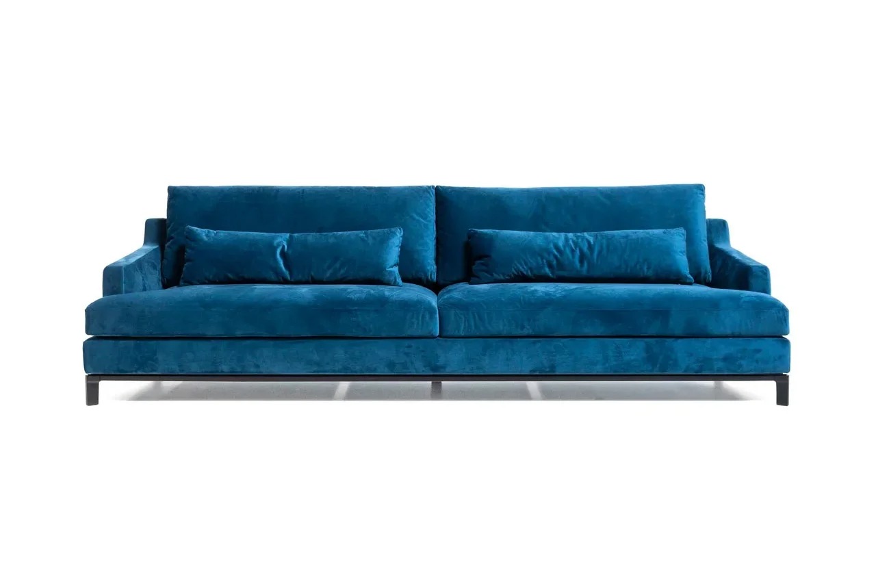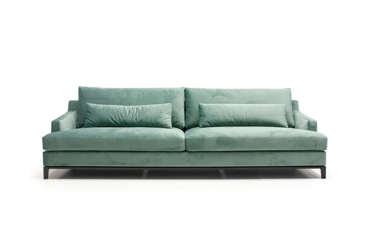Благодаря тонким спинкам и подлокотникам диван не займет много места. Характерная черта изделия — поразительная мягкость перьевых подушек спинки и сидения. Для большего комфорта можно добавить дополнительные валики под голову. Деревянное основание с тонкой обвязкой продумано до мелочей и отличается особенной прочностью. Изящные ножки и низкая посадка придают дивану парящий эффект, что смотрится особенно стильно и подчеркивает благородство модели.