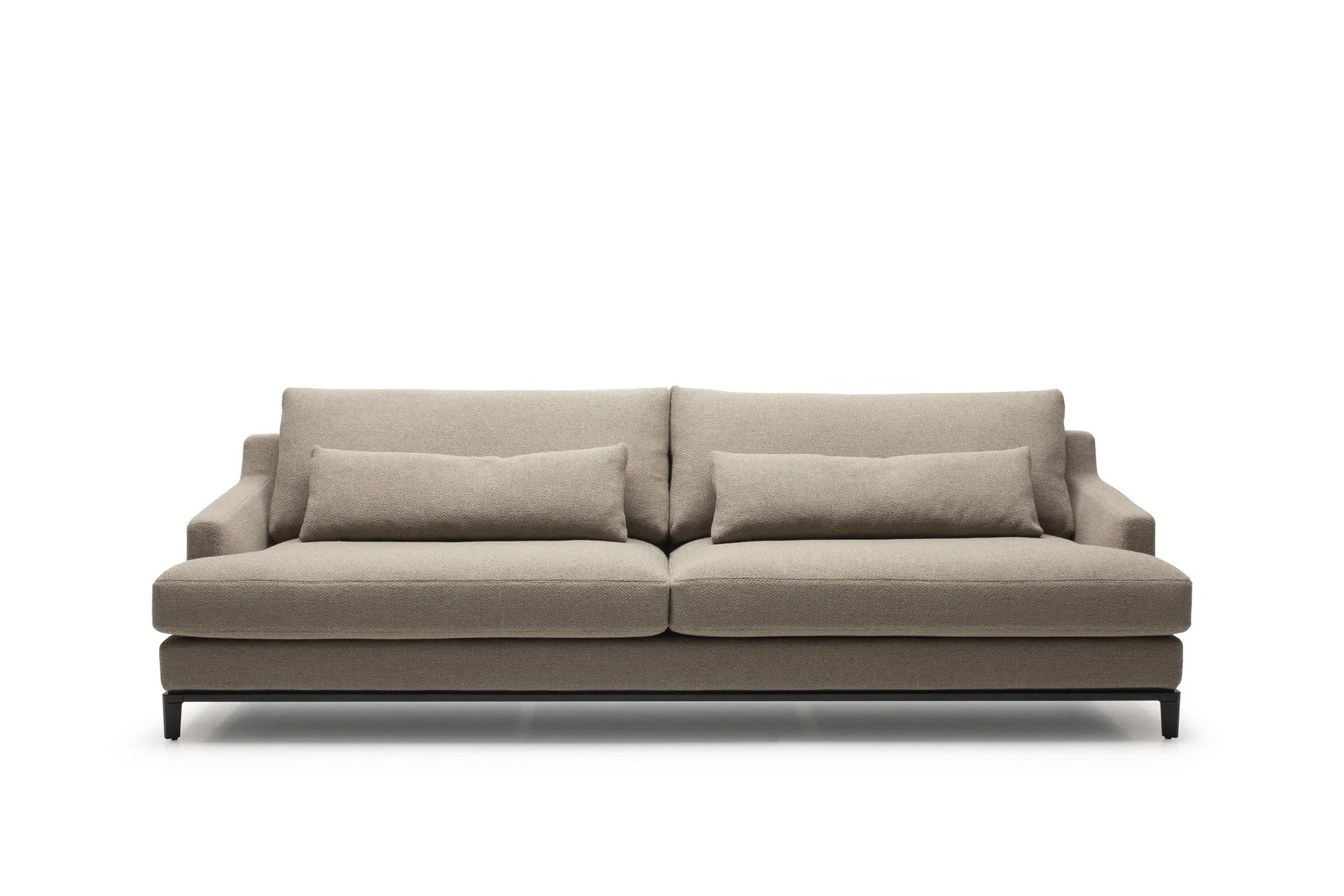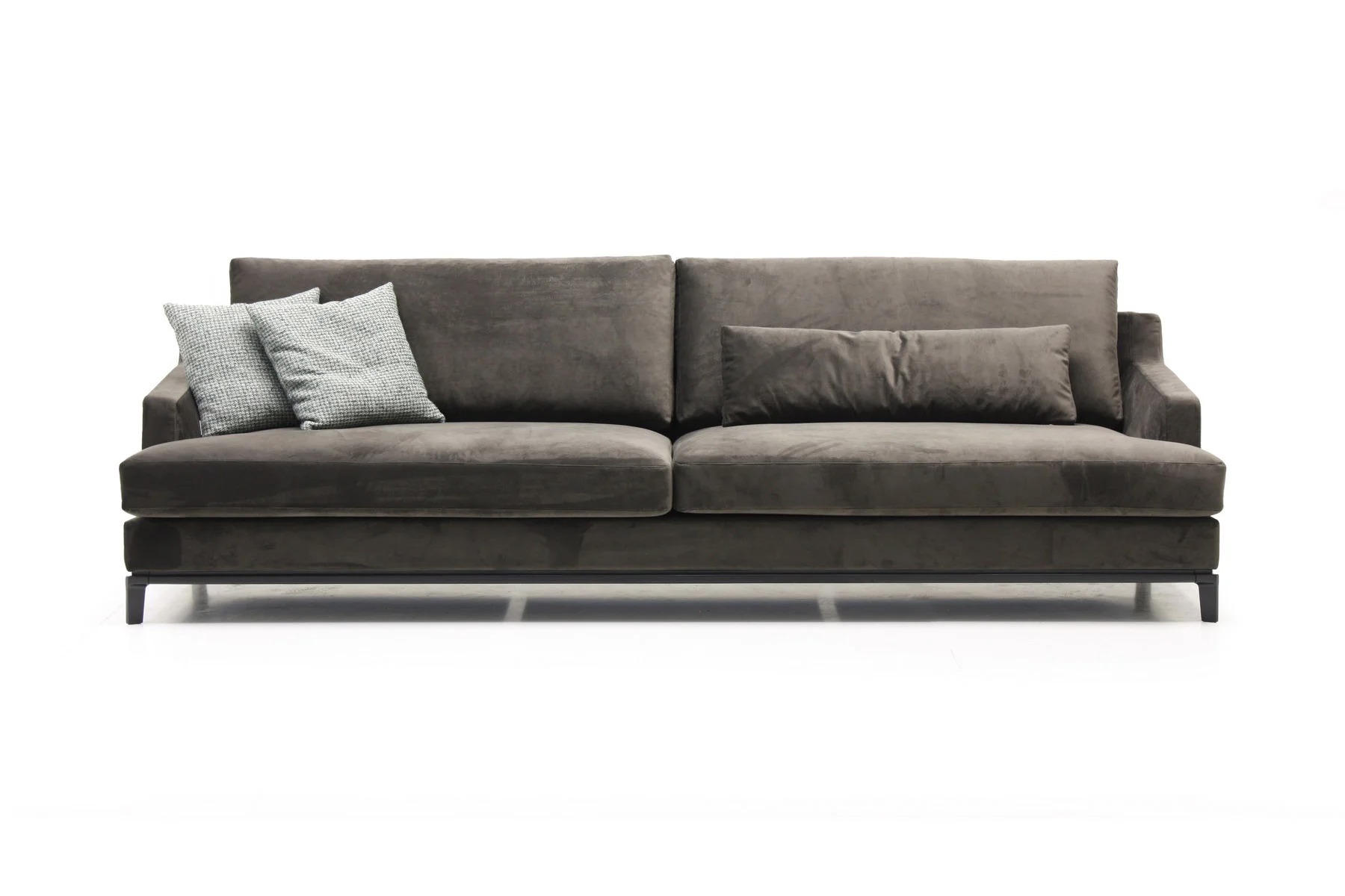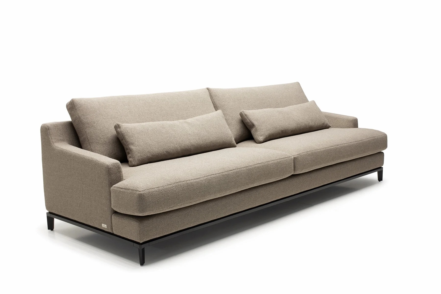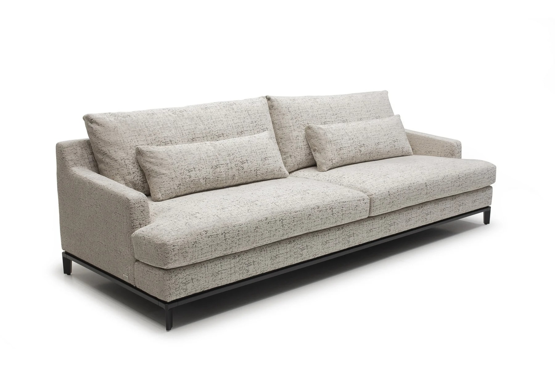 Благодаря тонким спинкам и подлокотникам диван не займет много места. Характерная черта изделия — поразительная мягкость перьевых подушек спинки и сидения. Для большего комфорта можно добавить дополнительные валики под голову. Деревянное основание с тонкой обвязкой продумано до мелочей и отличается особенной прочностью. Изящные ножки и низкая посадка придают дивану парящий эффект, что смотрится особенно стильно и подчеркивает благородство модели.