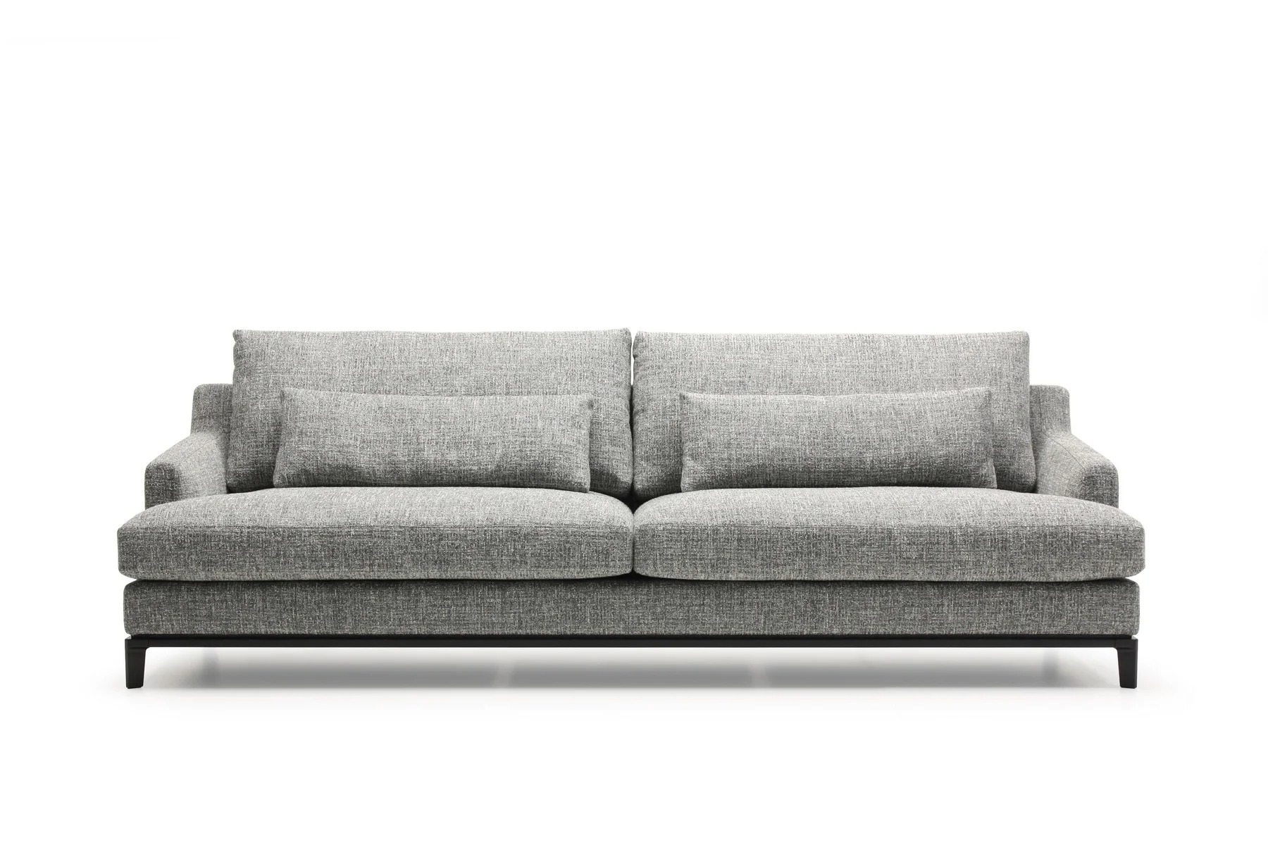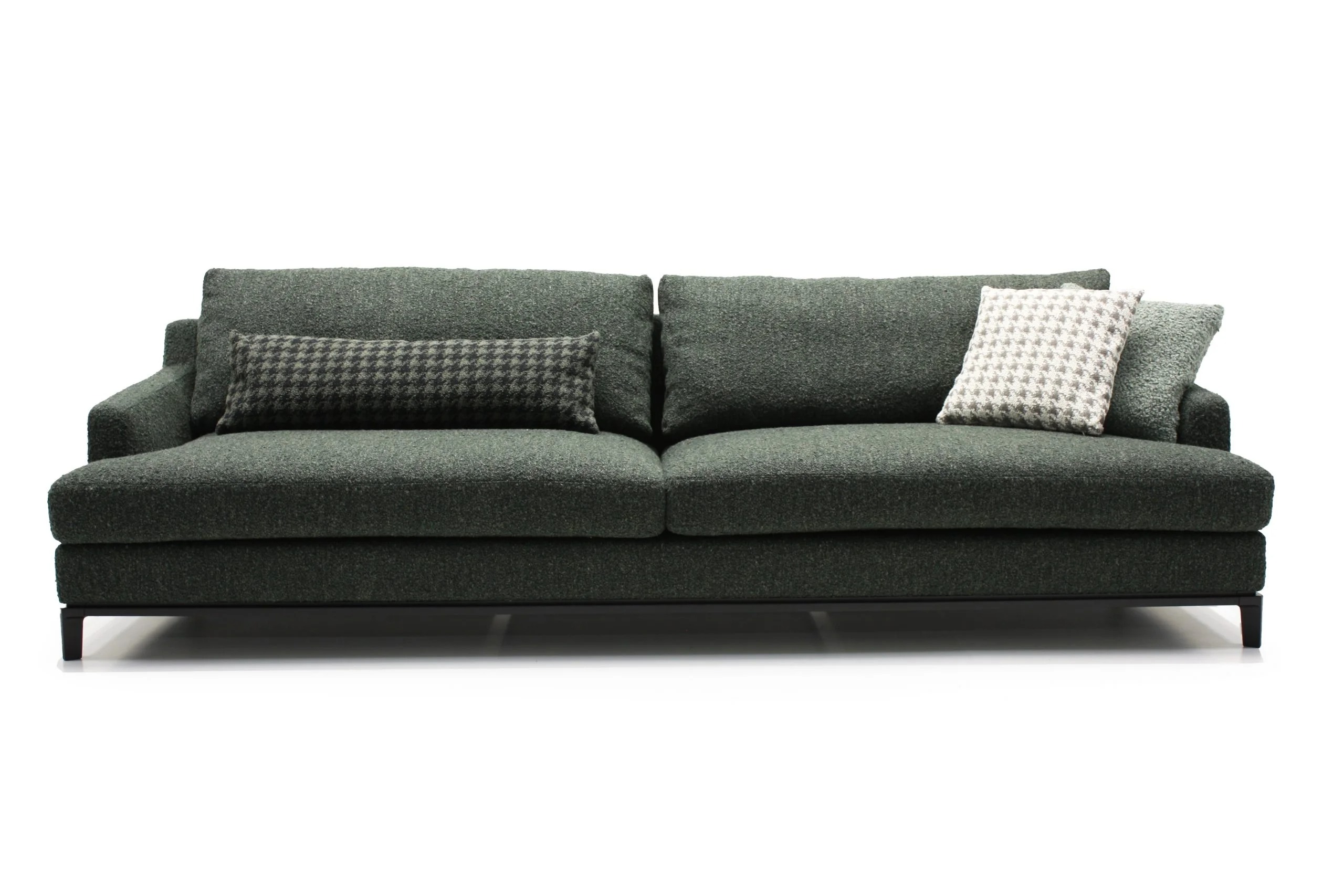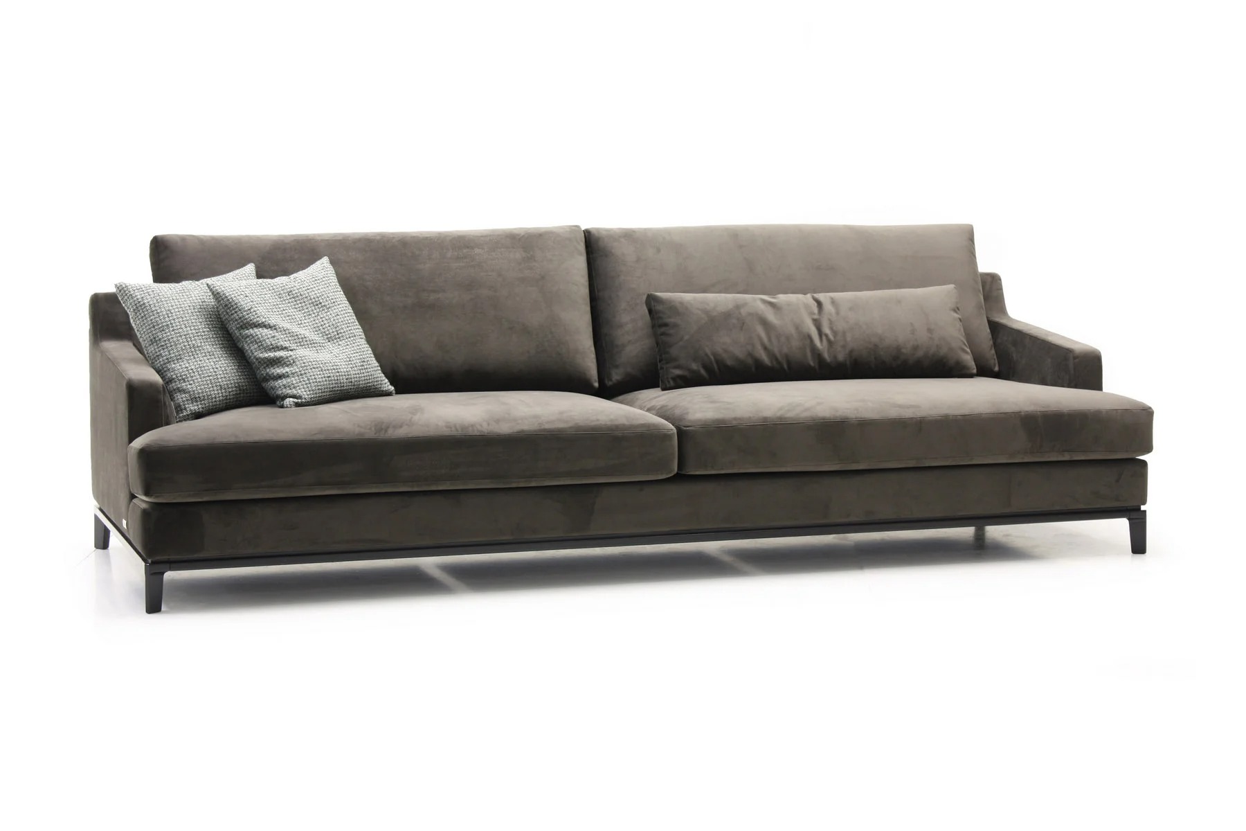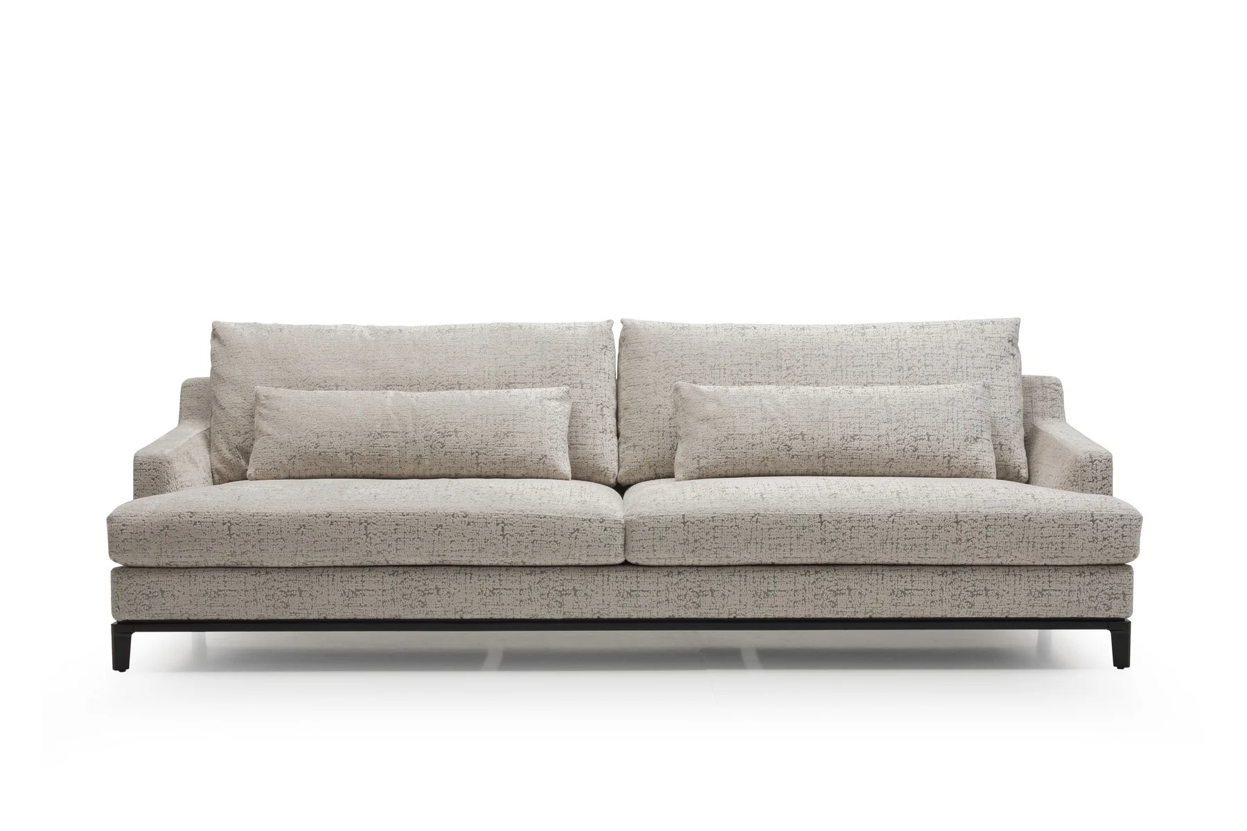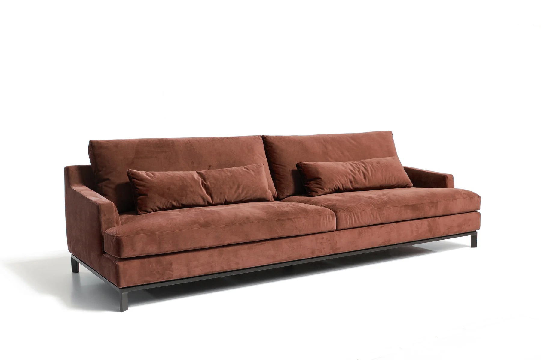 Благодаря тонким спинкам и подлокотникам диван не займет много места. Характерная черта изделия — поразительная мягкость перьевых подушек спинки и сидения. Для большего комфорта можно добавить дополнительные валики под голову. Деревянное основание с тонкой обвязкой продумано до мелочей и отличается особенной прочностью. Изящные ножки и низкая посадка придают дивану парящий эффект, что смотрится особенно стильно и подчеркивает благородство модели.