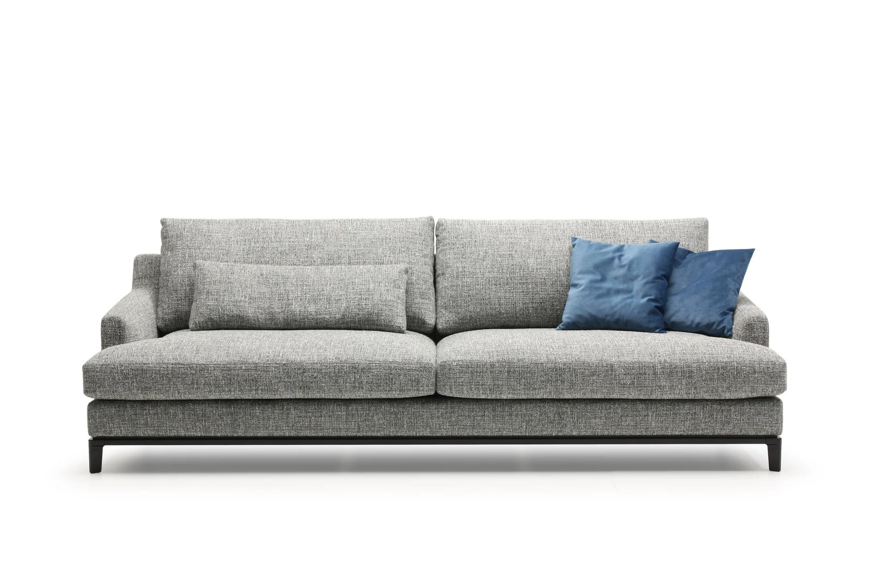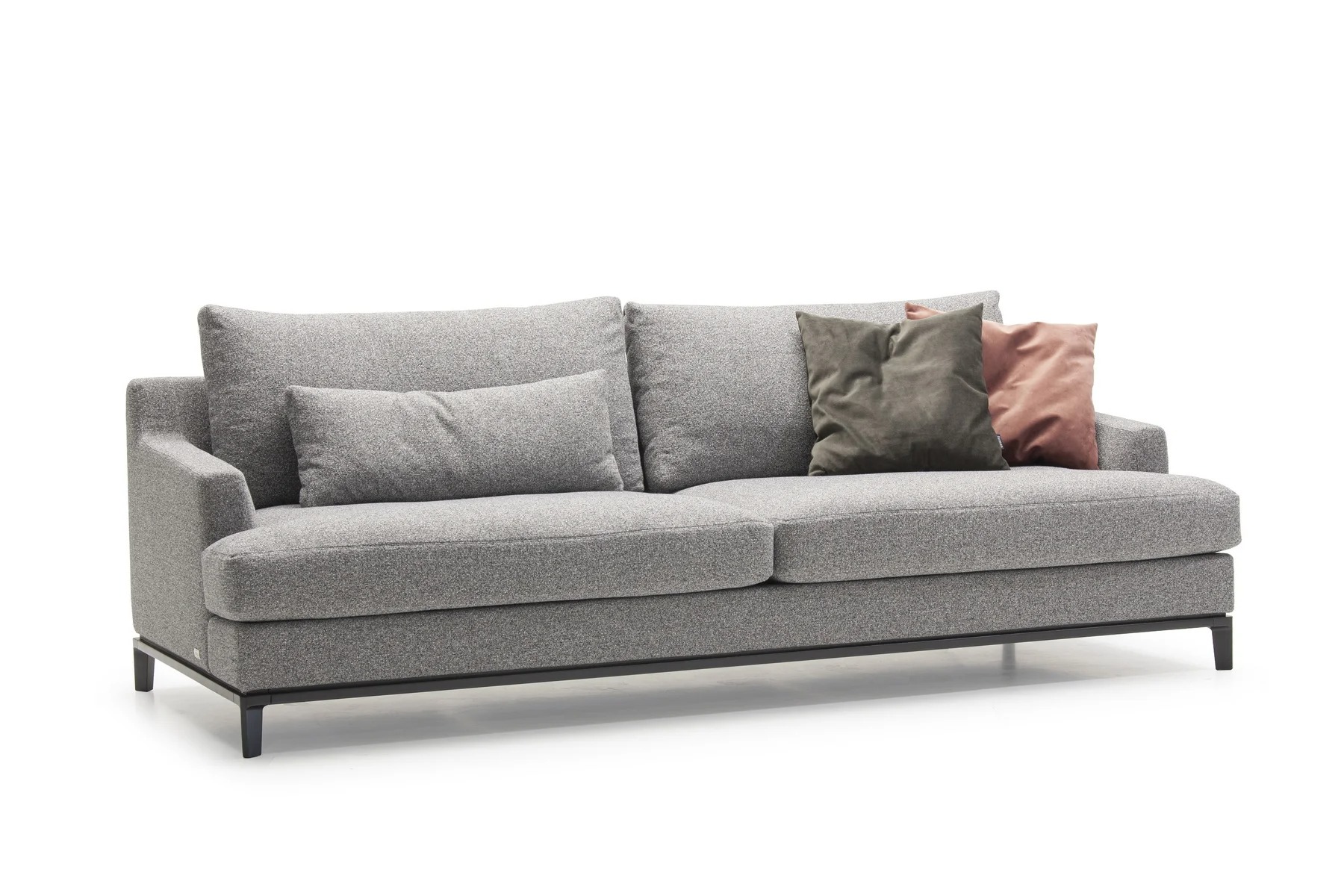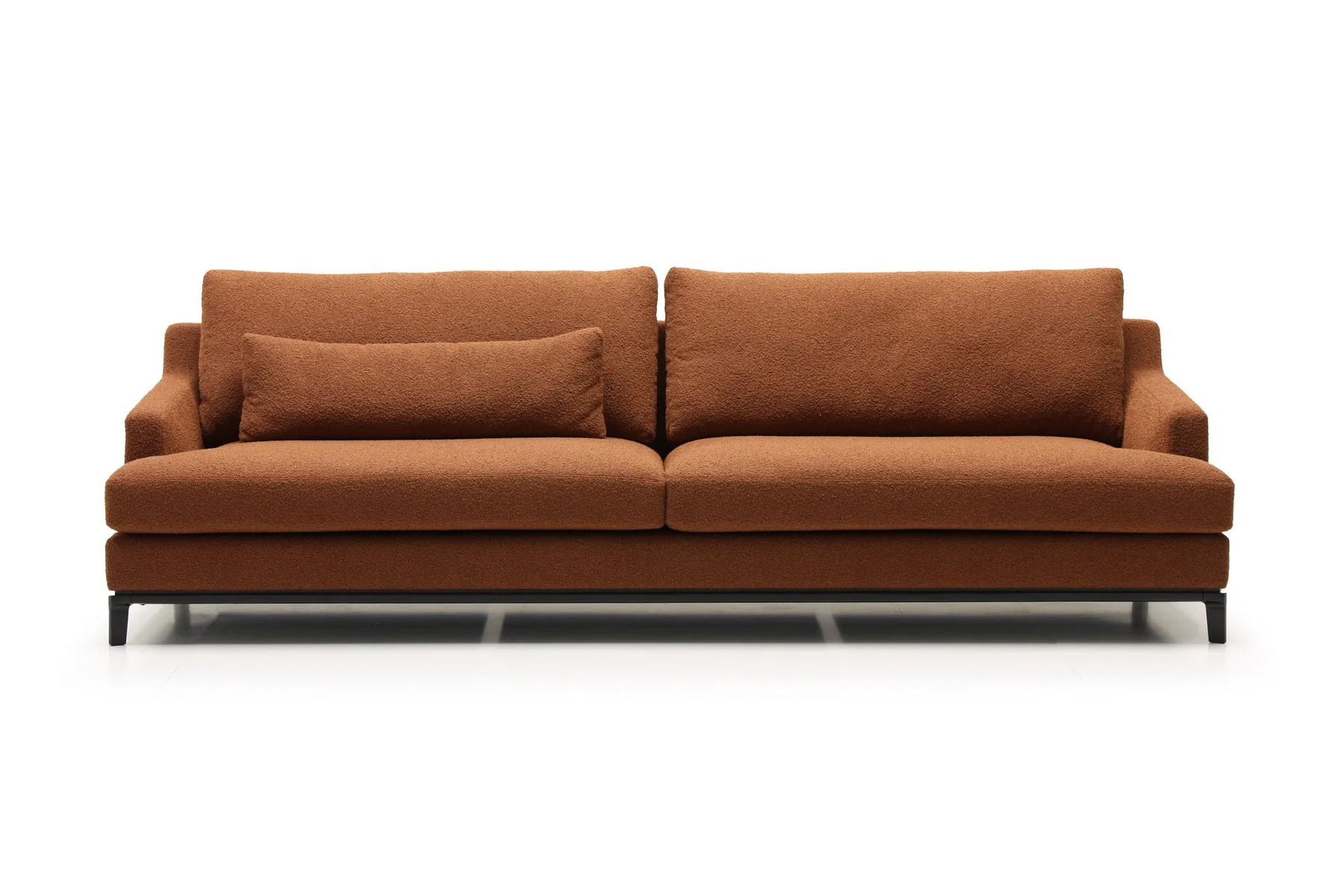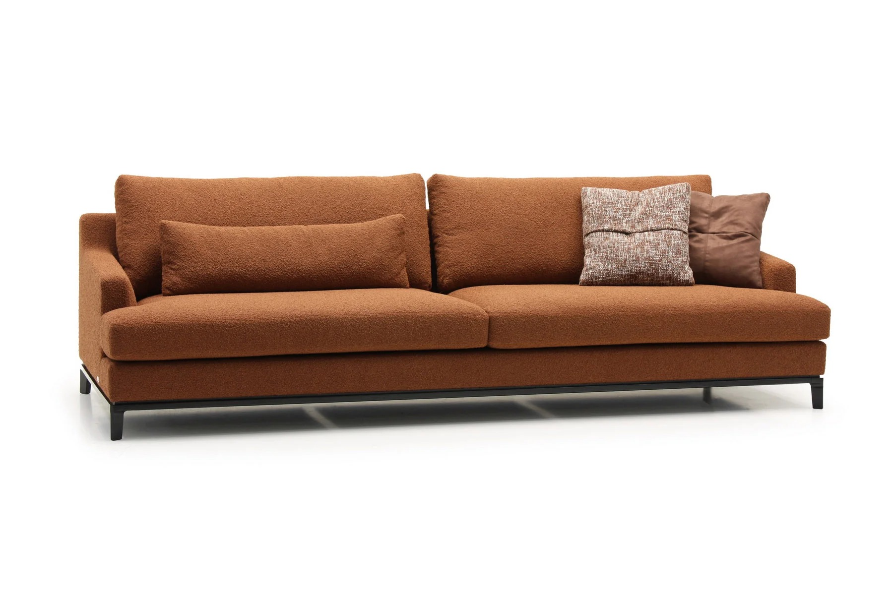Благодаря тонким спинкам и подлокотникам диван не займет много места. Характерная черта изделия — поразительная мягкость перьевых подушек спинки и сидения. Для большего комфорта можно добавить дополнительные валики под голову. Деревянное основание с тонкой обвязкой продумано до мелочей и отличается особенной прочностью. Изящные ножки и низкая посадка придают дивану парящий эффект, что смотрится особенно стильно и подчеркивает благородство модели.