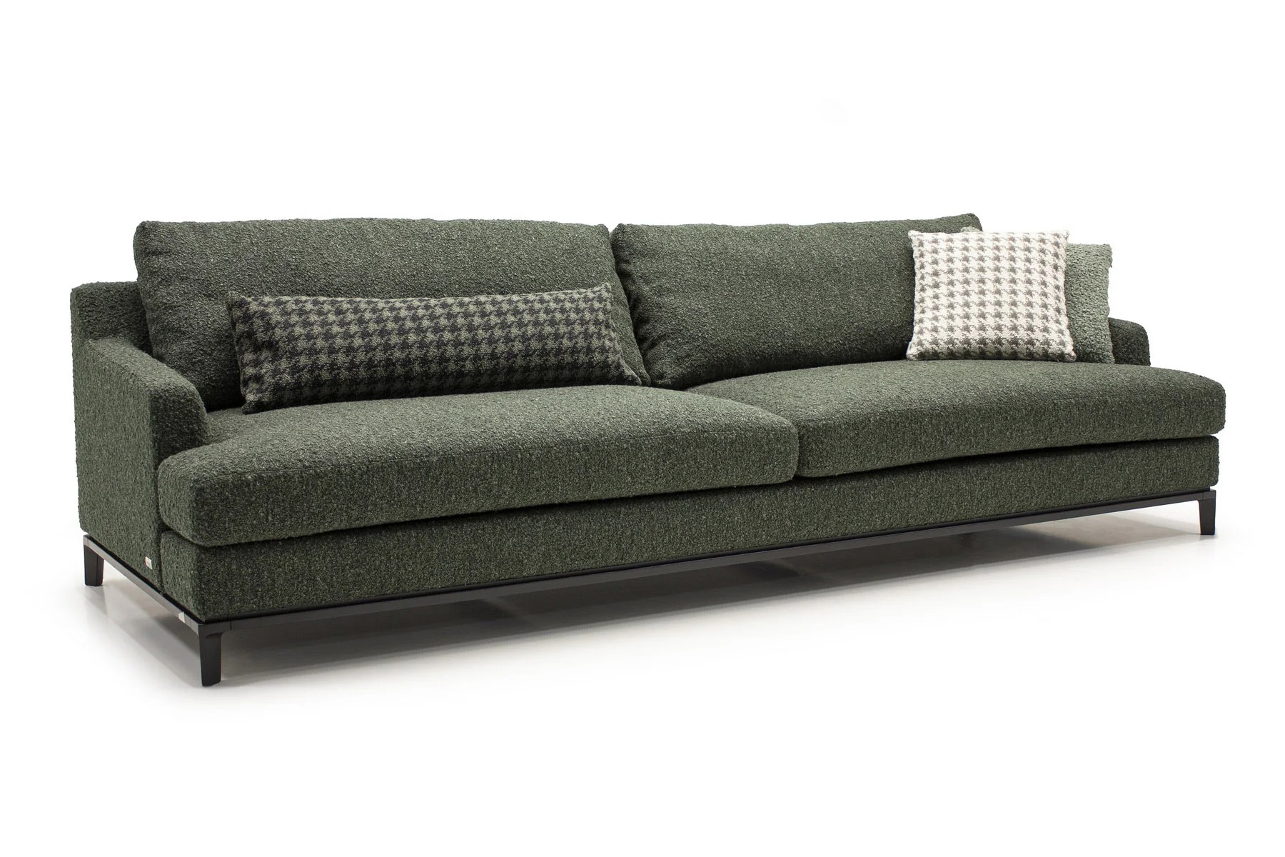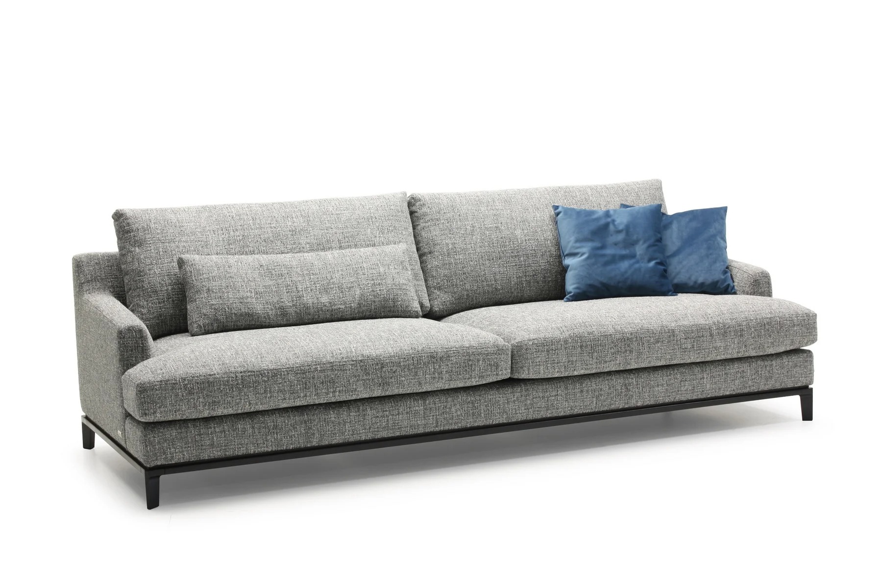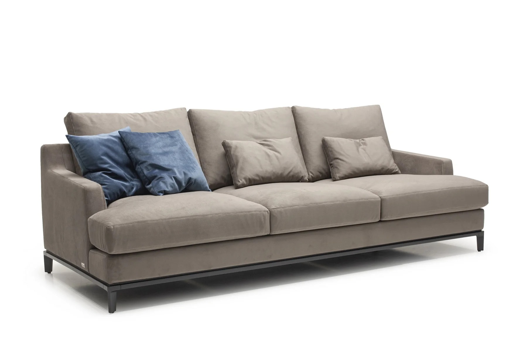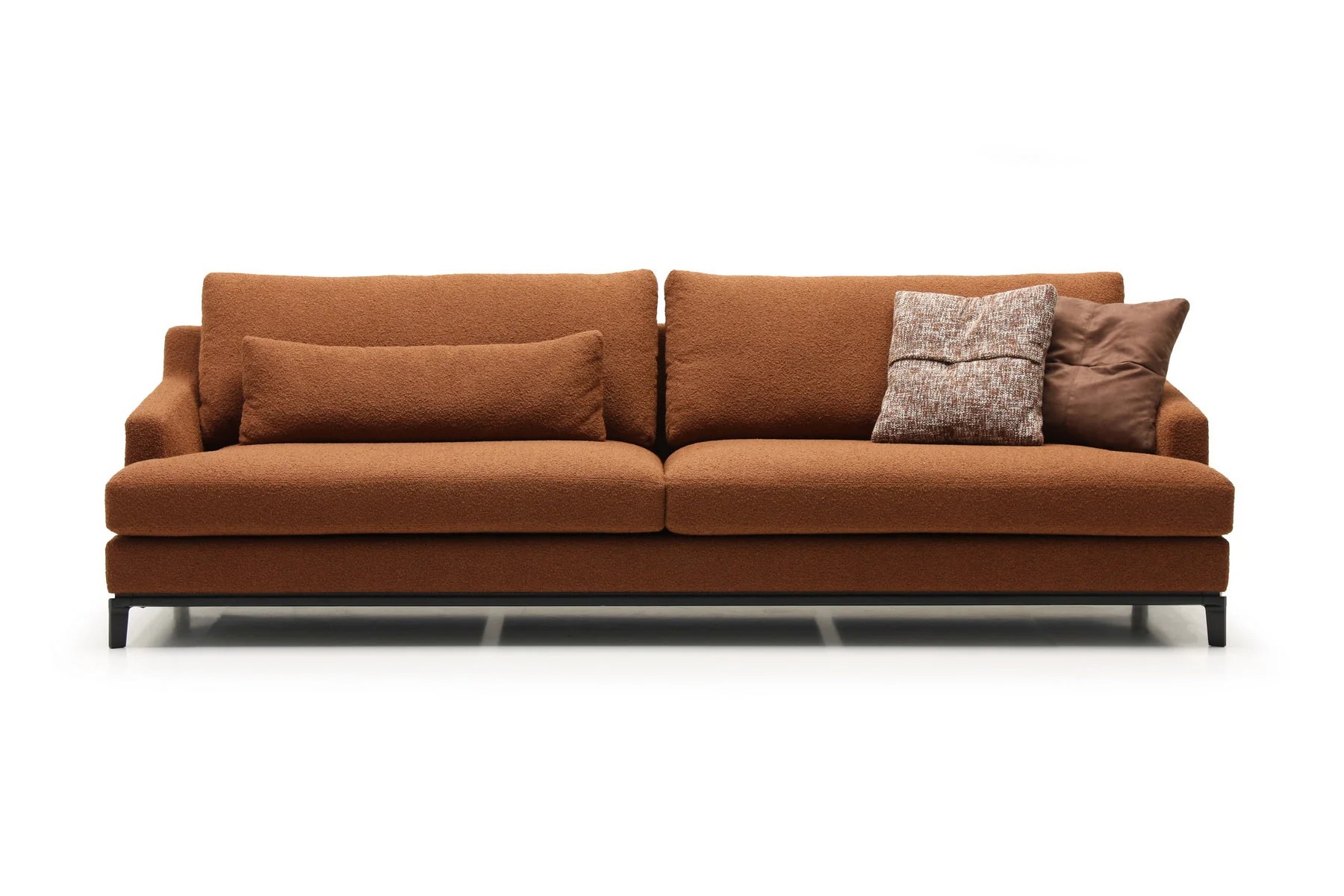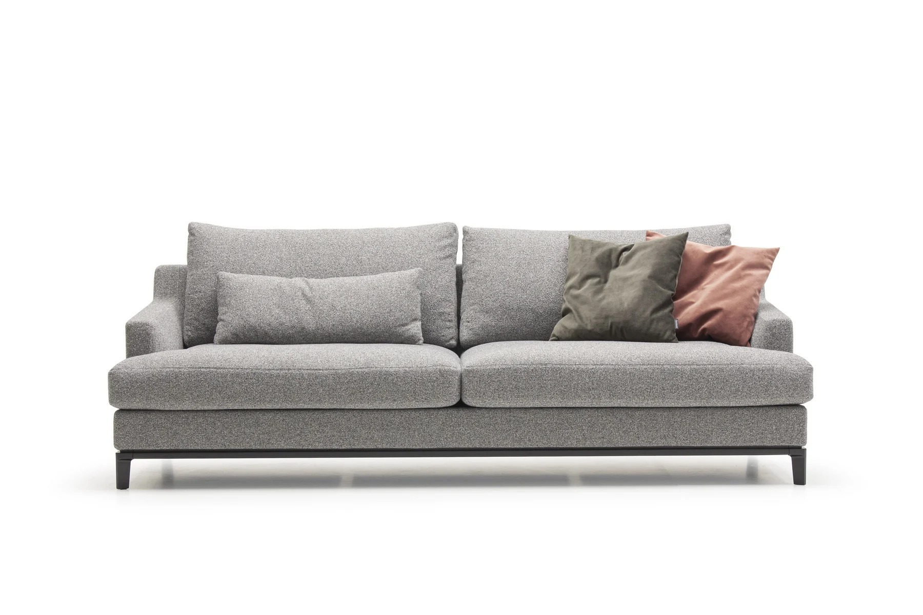 Благодаря тонким спинкам и подлокотникам диван не займет много места. Характерная черта изделия — поразительная мягкость перьевых подушек спинки и сидения. Для большего комфорта можно добавить дополнительные валики под голову. Деревянное основание с тонкой обвязкой продумано до мелочей и отличается особенной прочностью. Изящные ножки и низкая посадка придают дивану парящий эффект, что смотрится особенно стильно и подчеркивает благородство модели.