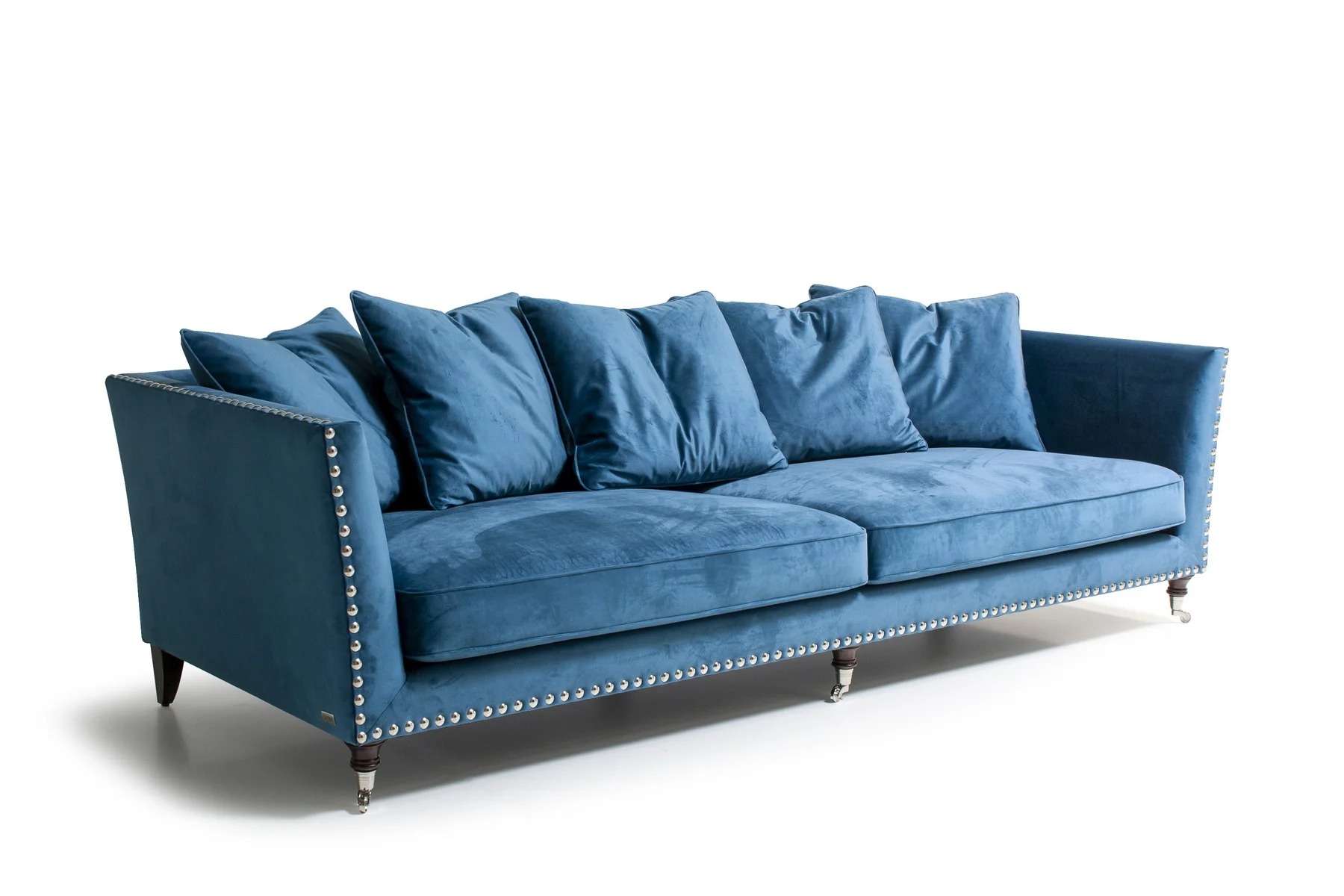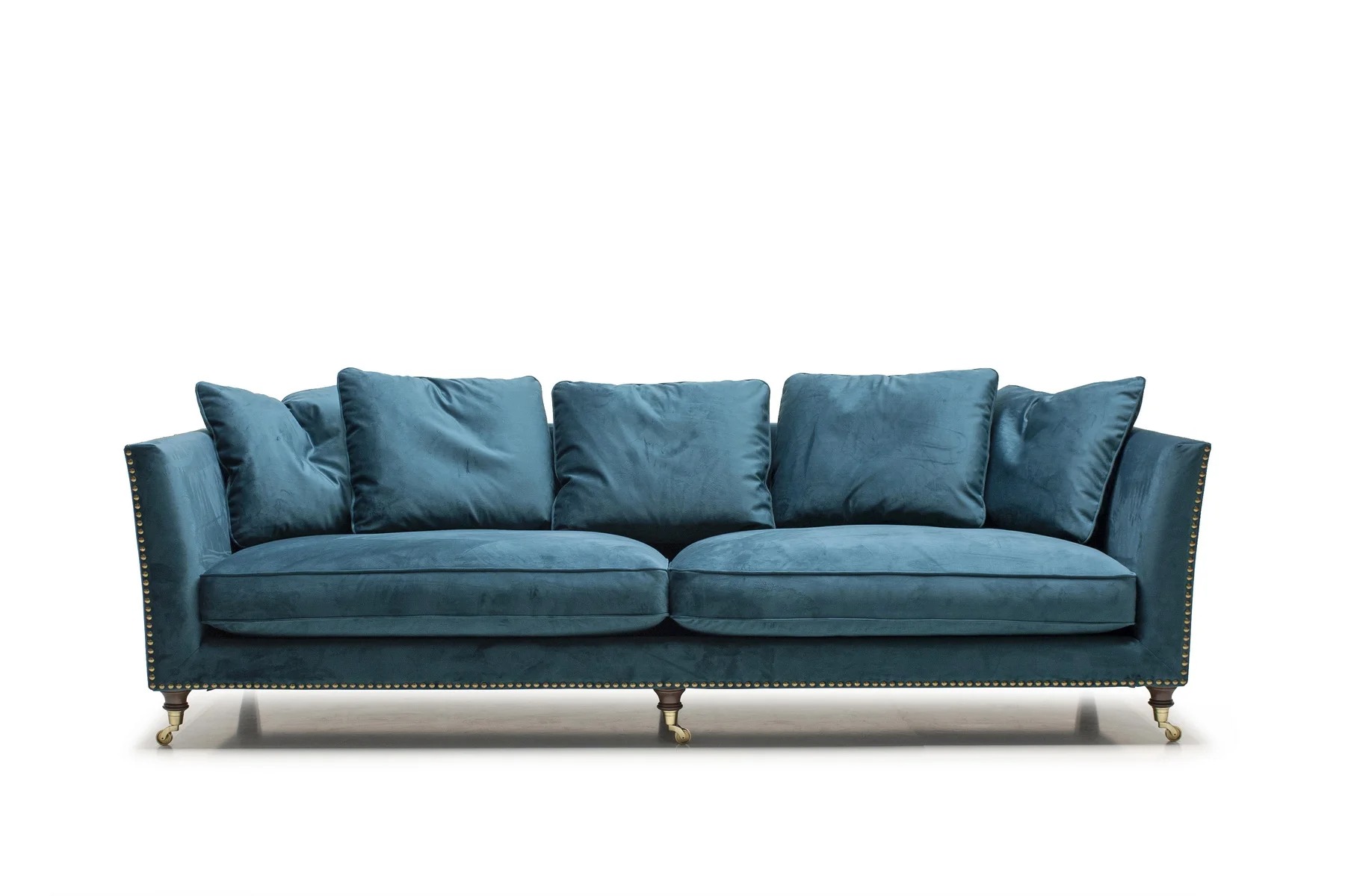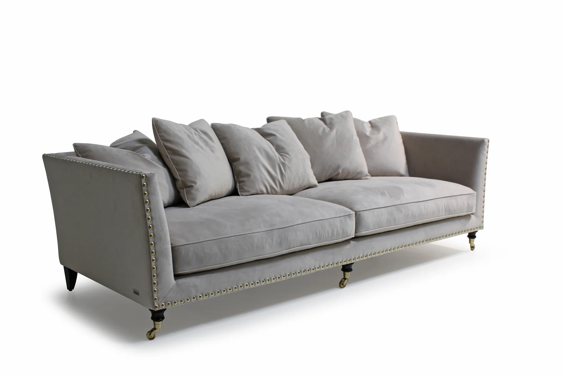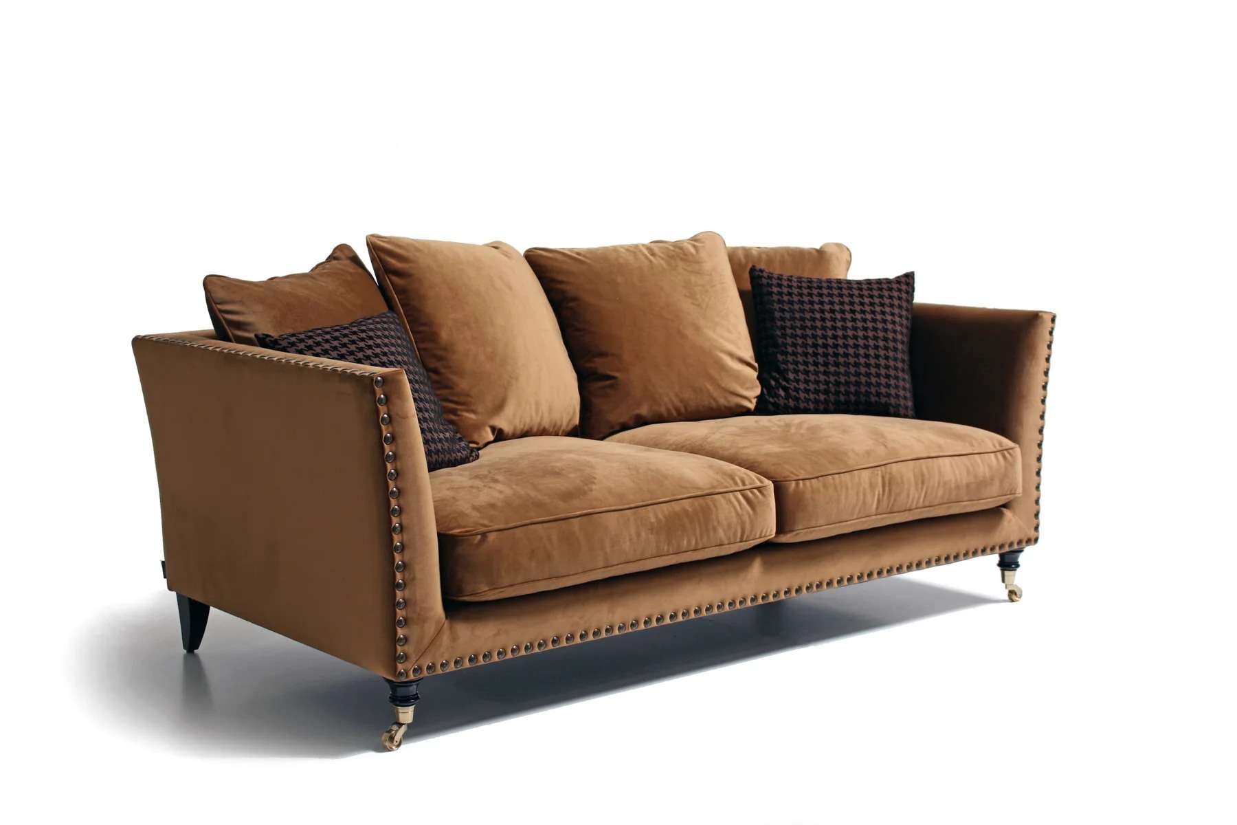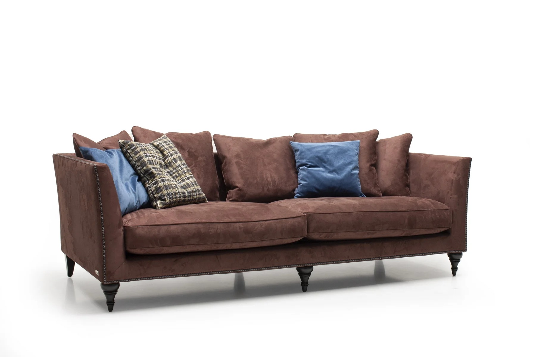 Отделка гвоздями по периметру и опоры из массива дерева — примечательные детали дивана. Кроме безупречного стиля диван отличается удивительной мягкостью, благодаря комбинации пенополиуретанового и перьевого наполнителя. Лучше всего Victory Classic смотрится с замшевой обивкой.