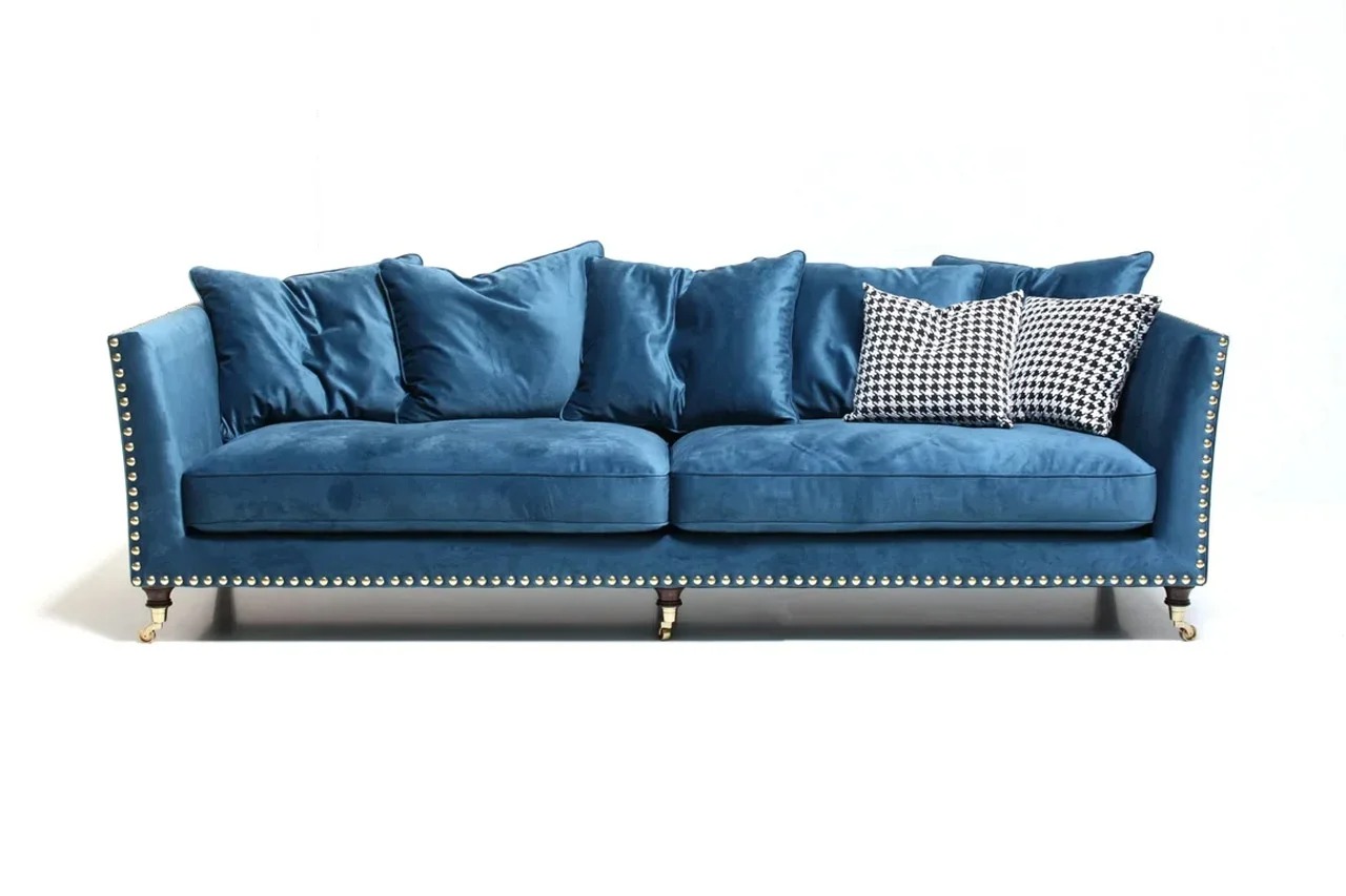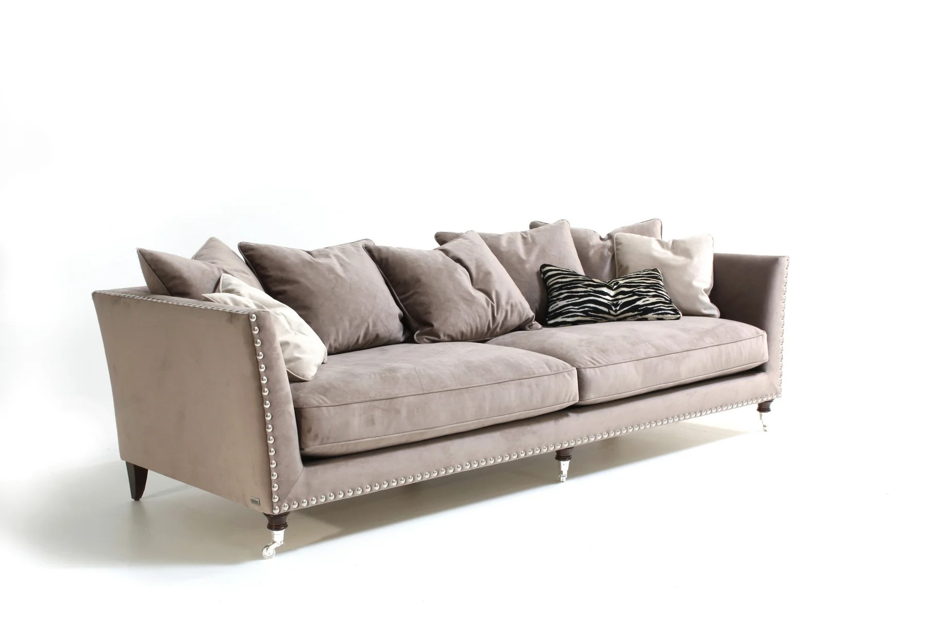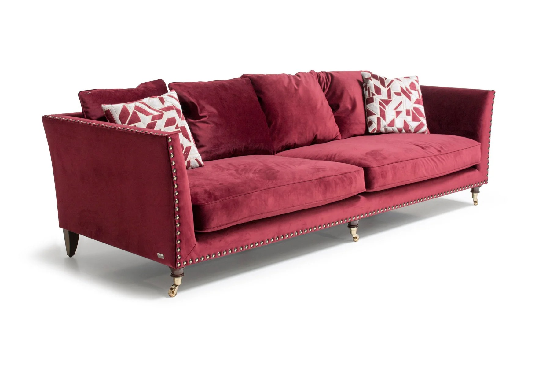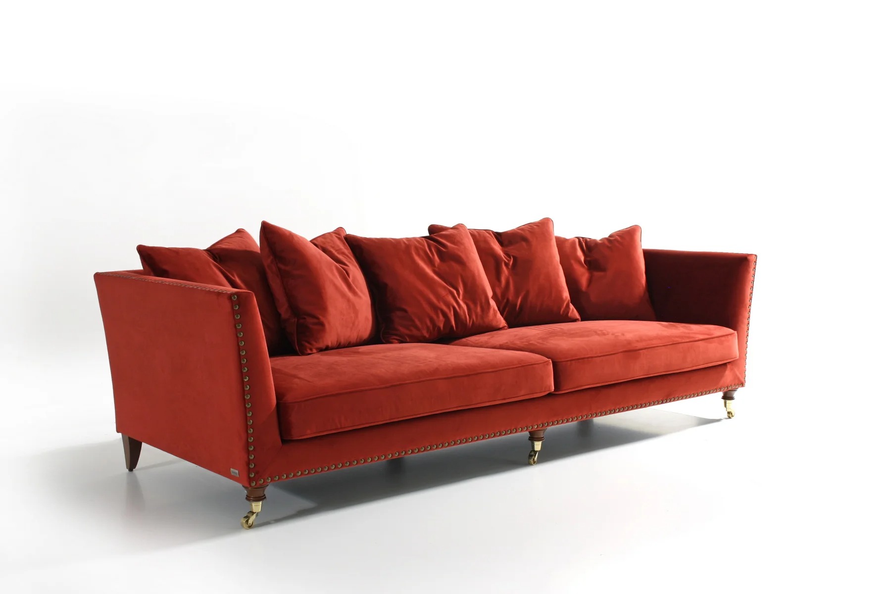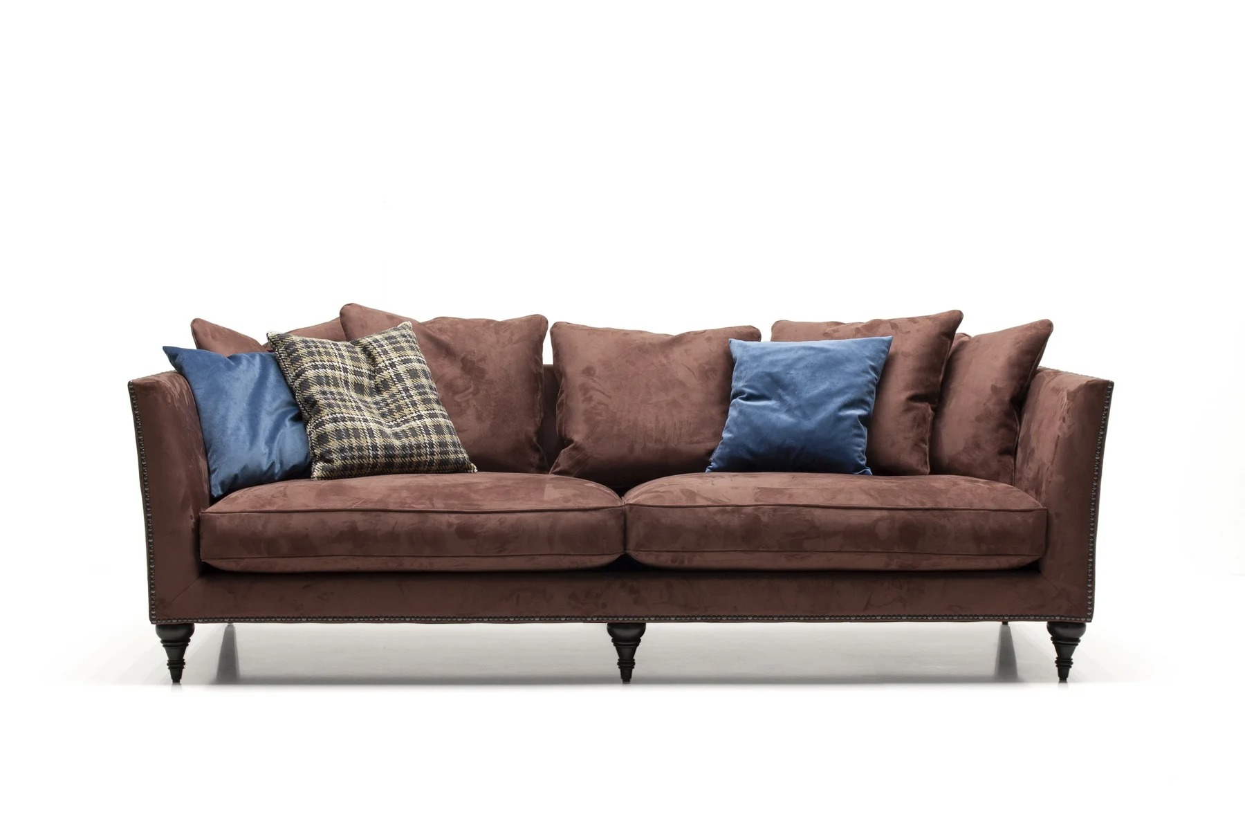 Отделка гвоздями по периметру и опоры из массива дерева — примечательные детали дивана. Кроме безупречного стиля диван отличается удивительной мягкостью, благодаря комбинации пенополиуретанового и перьевого наполнителя. Лучше всего Victory Classic смотрится с замшевой обивкой.