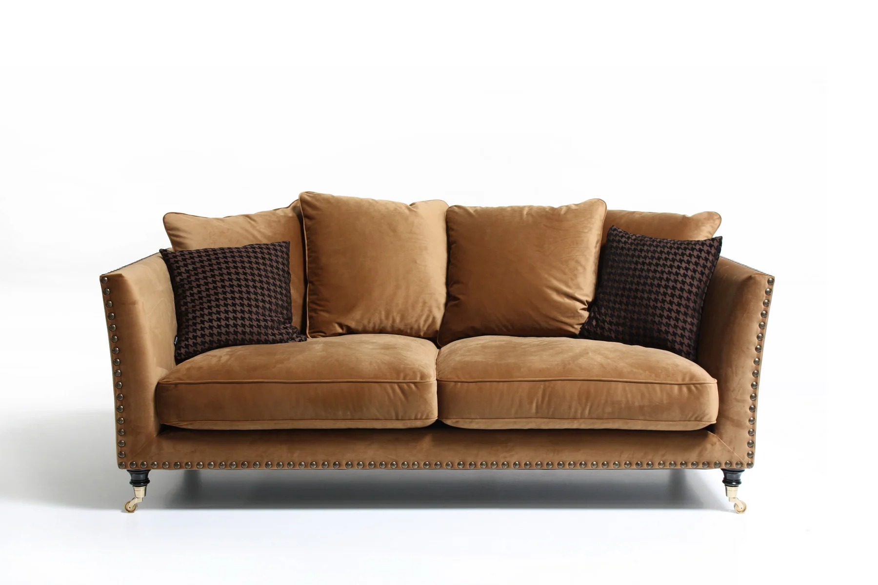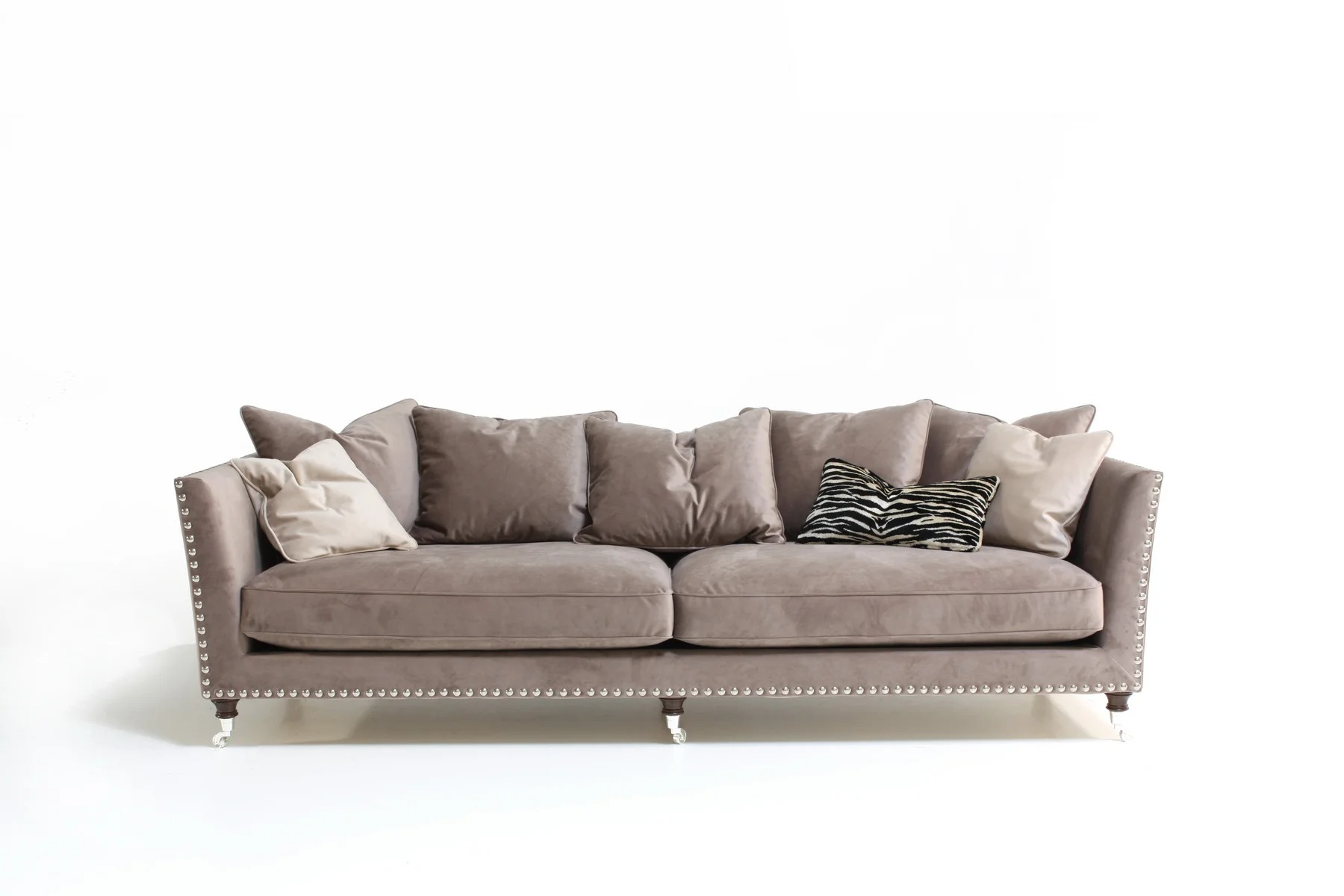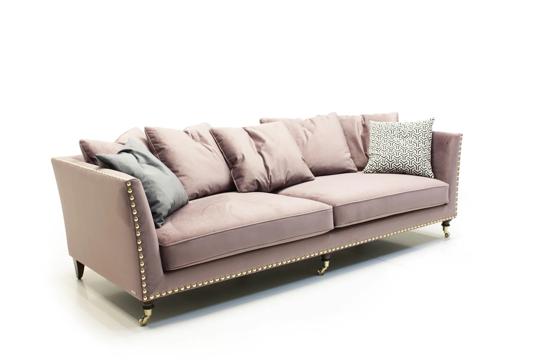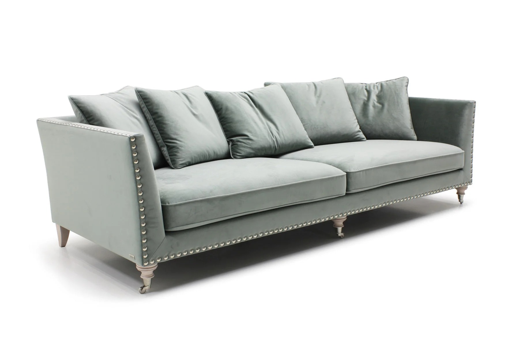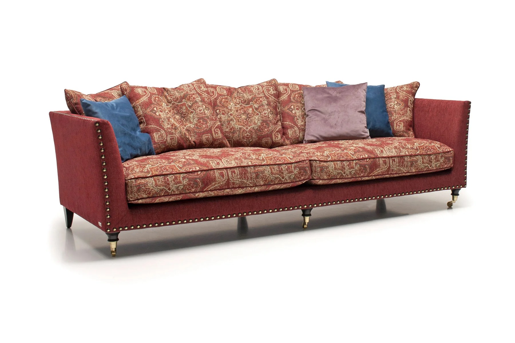 Отделка гвоздями по периметру и опоры из массива дерева — примечательные детали дивана. Кроме безупречного стиля диван отличается удивительной мягкостью, благодаря комбинации пенополиуретанового и перьевого наполнителя. Лучше всего Victory Classic смотрится с замшевой обивкой.