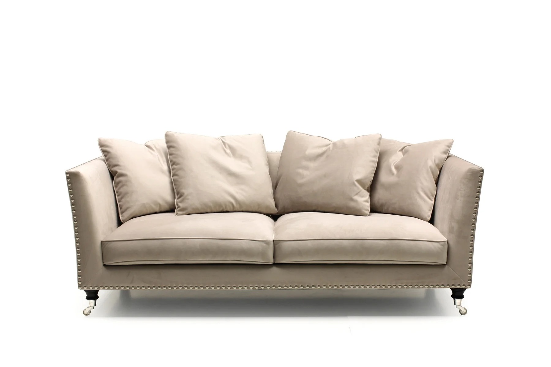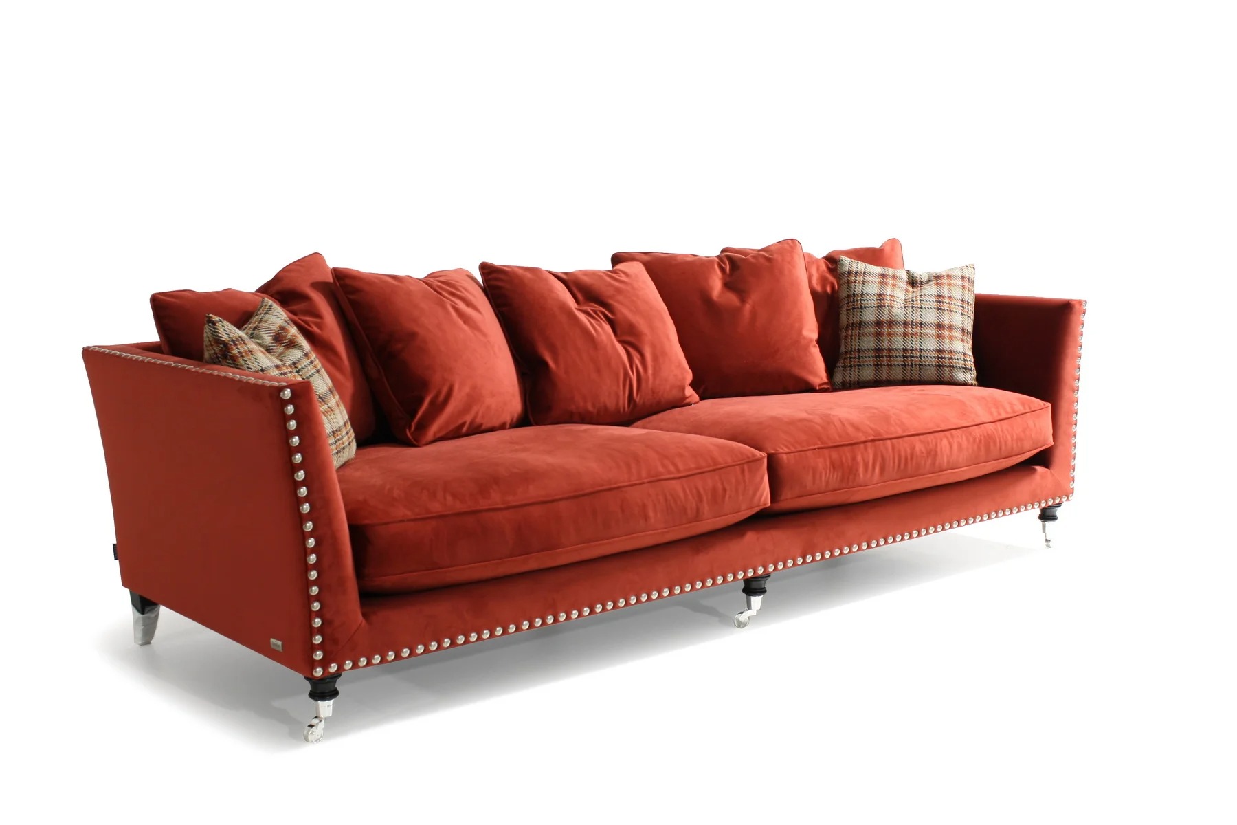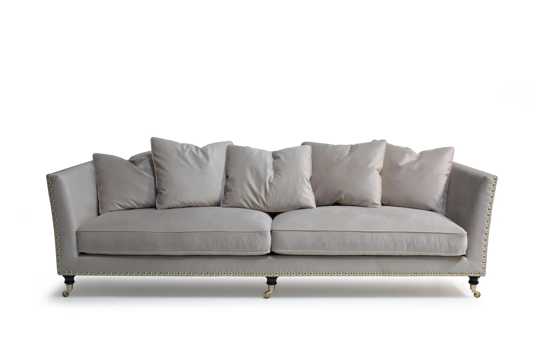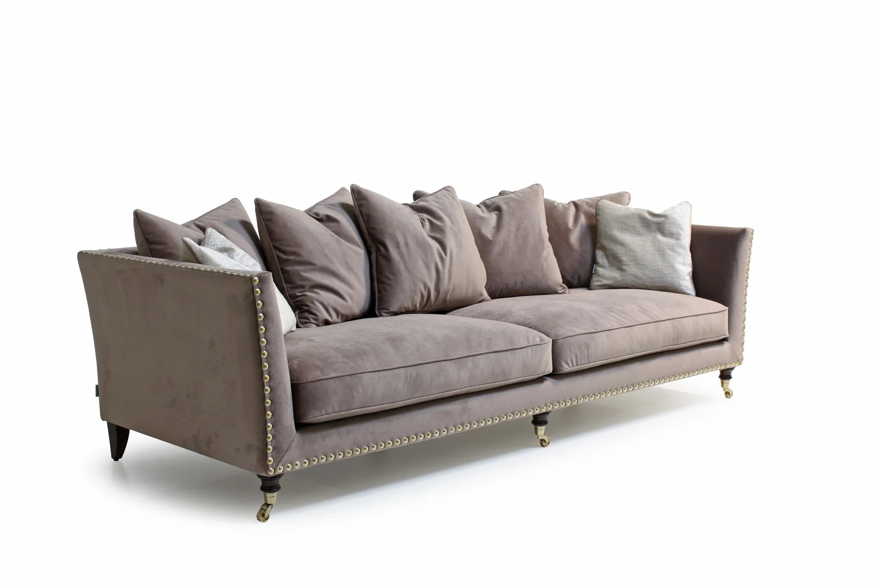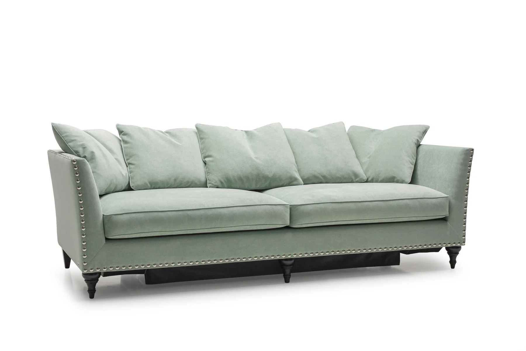 Отделка гвоздями по периметру и опоры из массива дерева — примечательные детали дивана. Кроме безупречного стиля диван отличается удивительной мягкостью, благодаря комбинации пенополиуретанового и перьевого наполнителя. Лучше всего Victory Classic смотрится с замшевой обивкой.