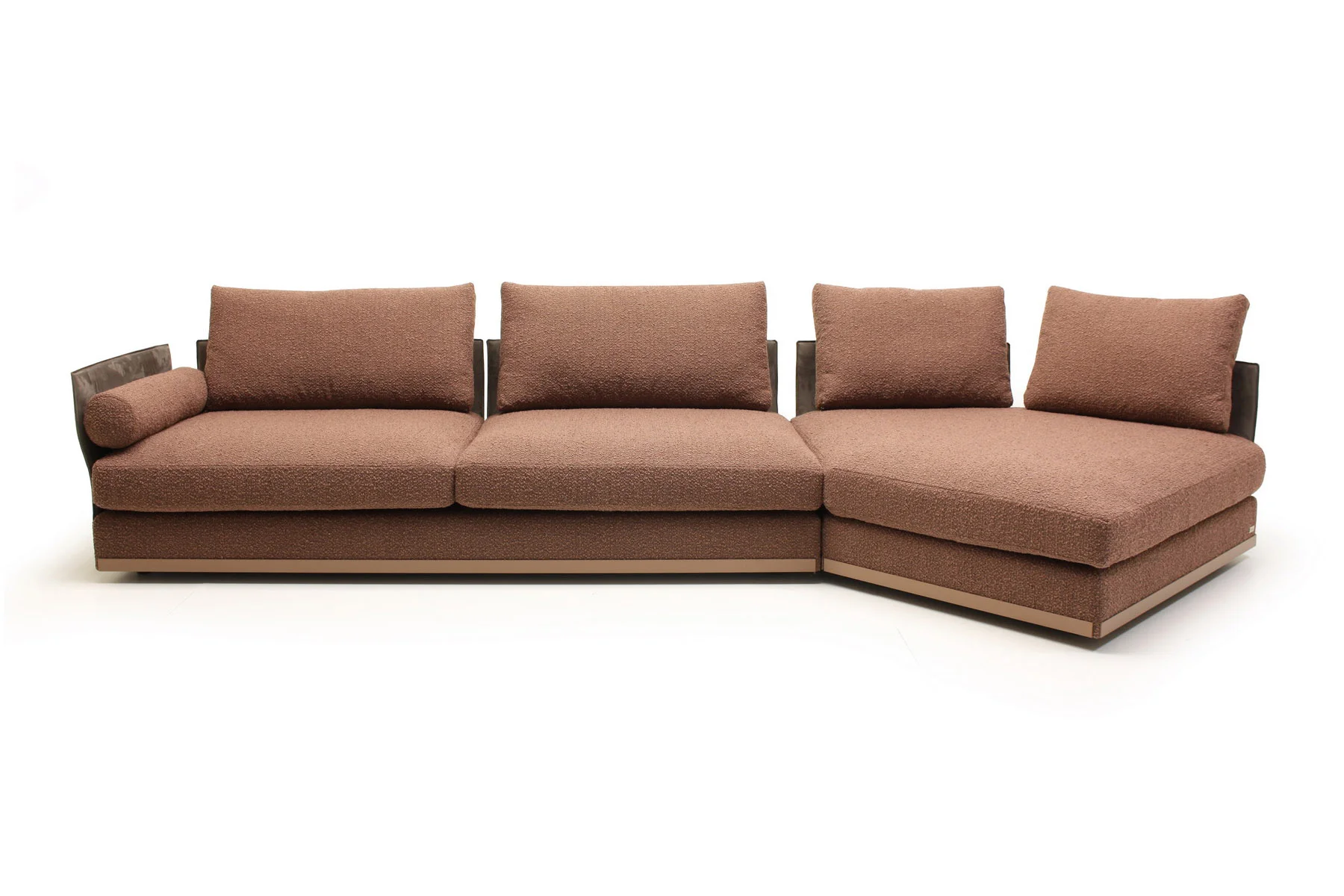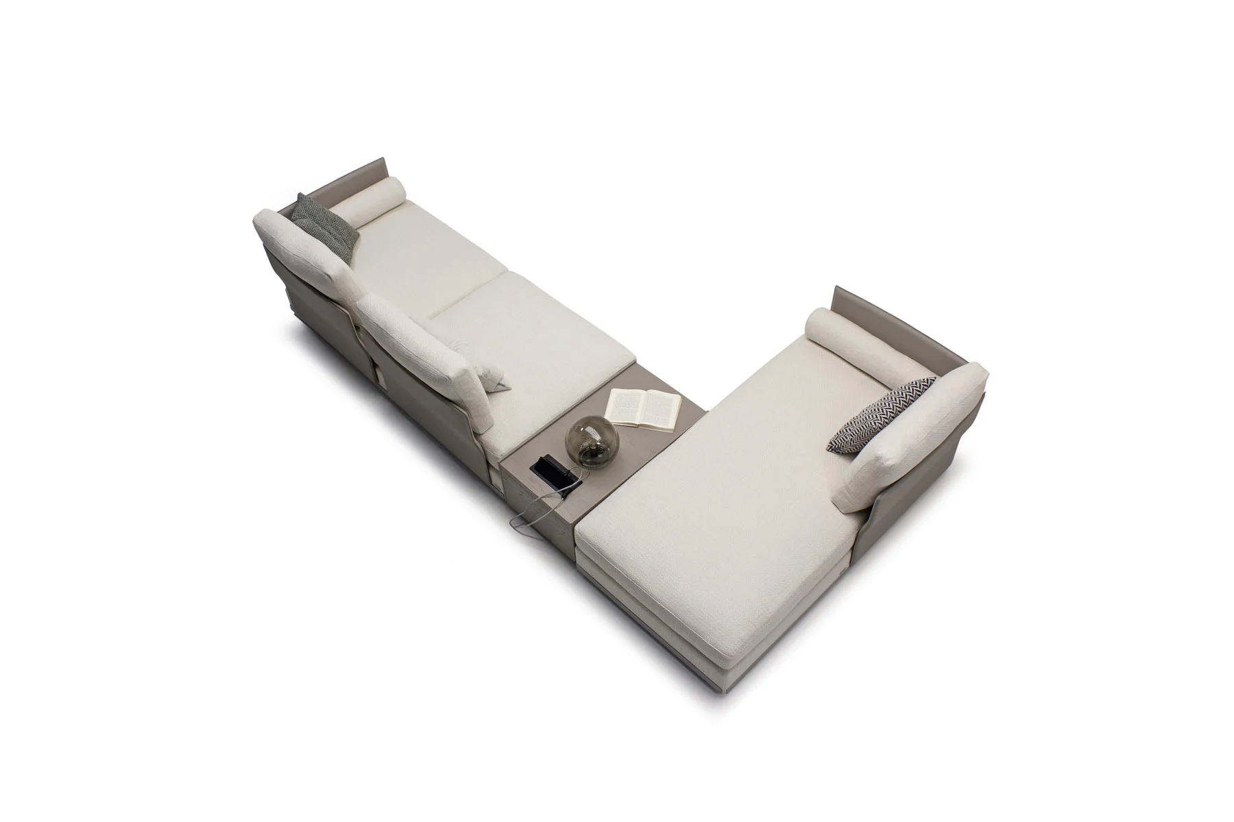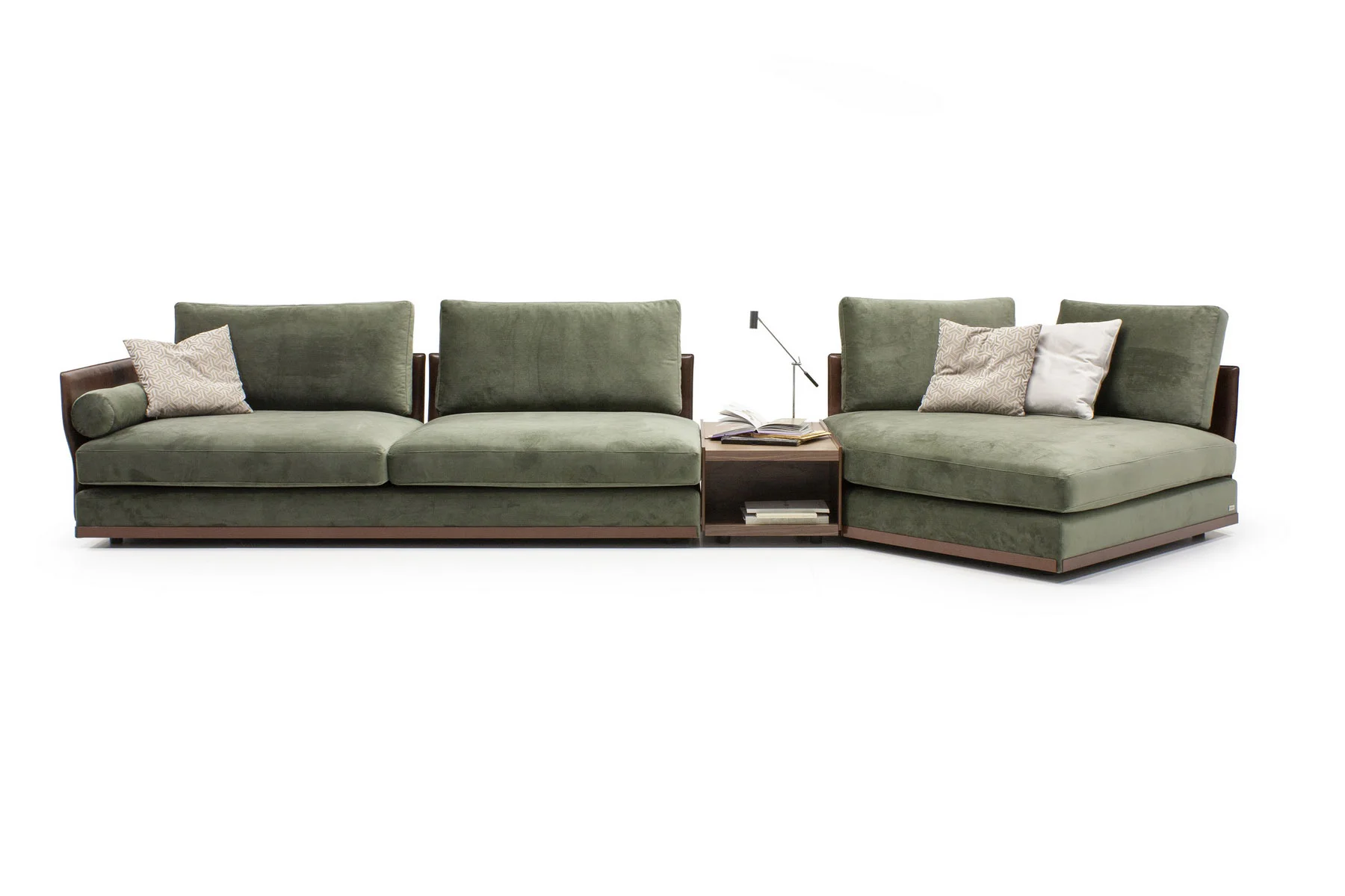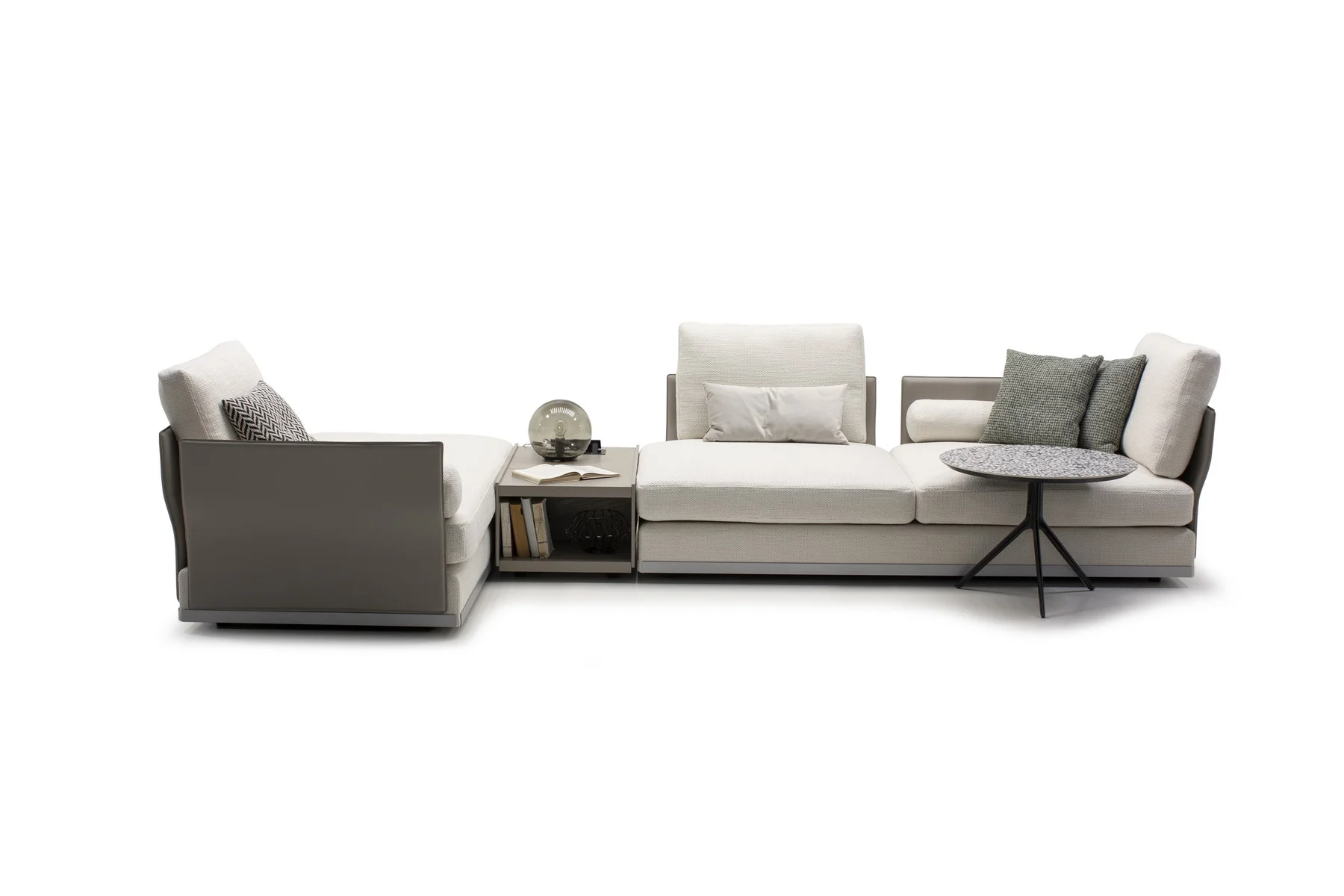 Модули дивана возможны в разных размерах, благодаря чему, Aston имеет много композиционных решений. По желанию его можно разнообразить модулем с полкой.