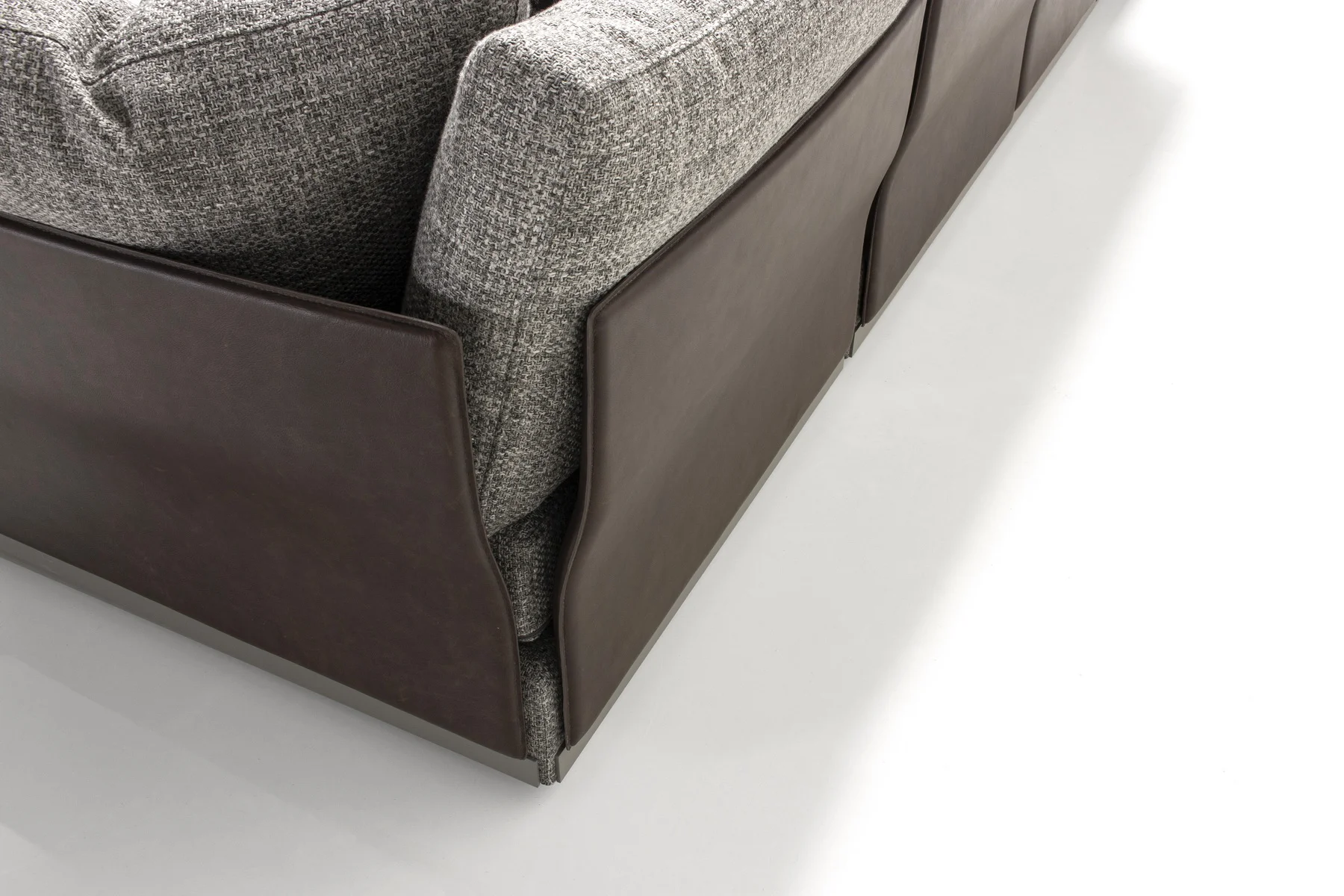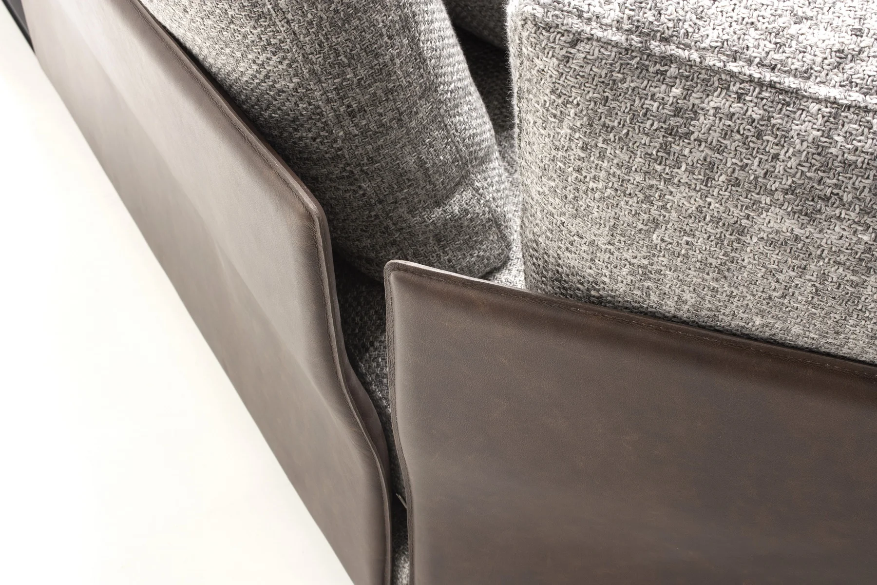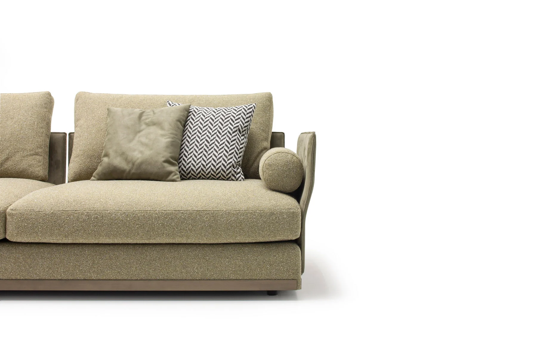 Характерная особенность дивана — изящные тонкие спинки, которые можно одеть как в кожу, так и в текстиль. Необыкновенно стильно выглядит сочетание различных фактур и цветов. Комфорт изделию придаёт наполнитель с использованием пера.
