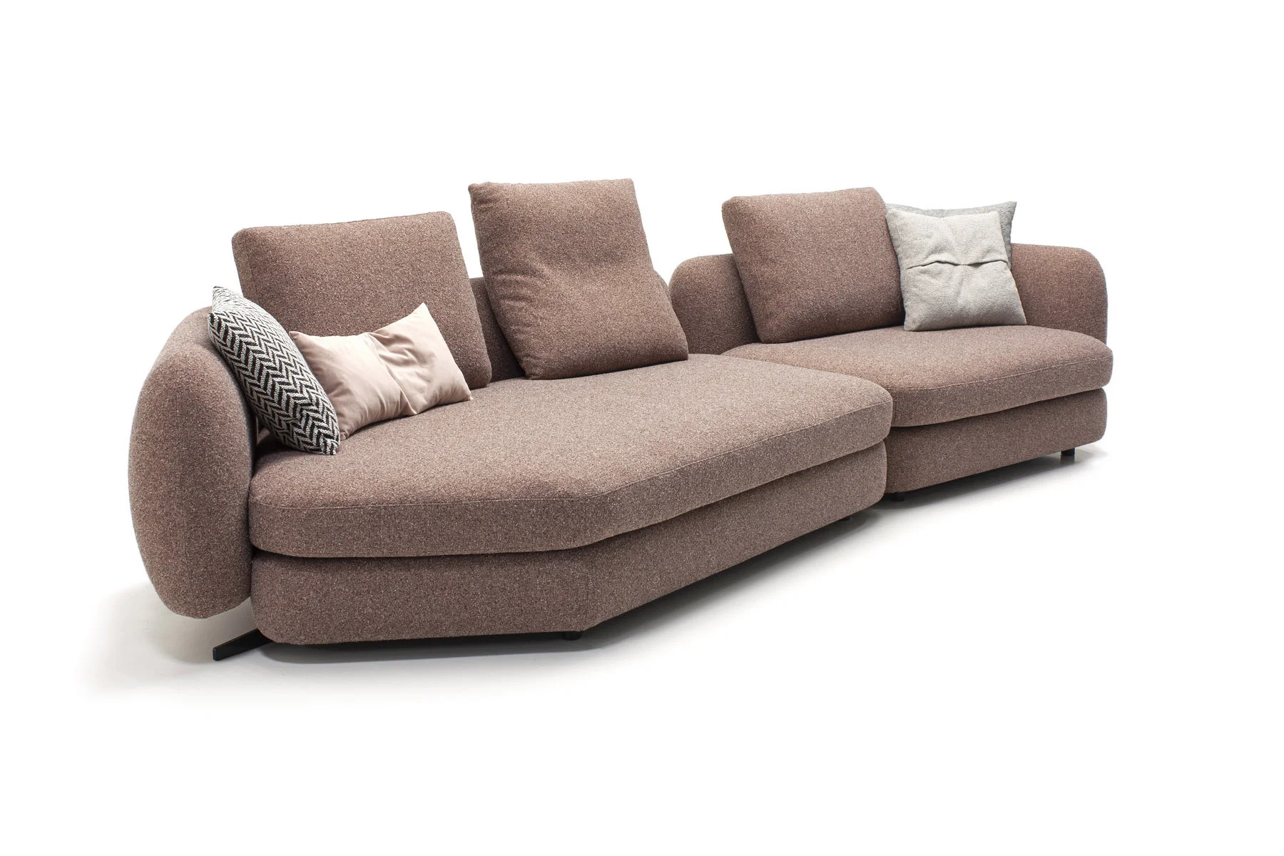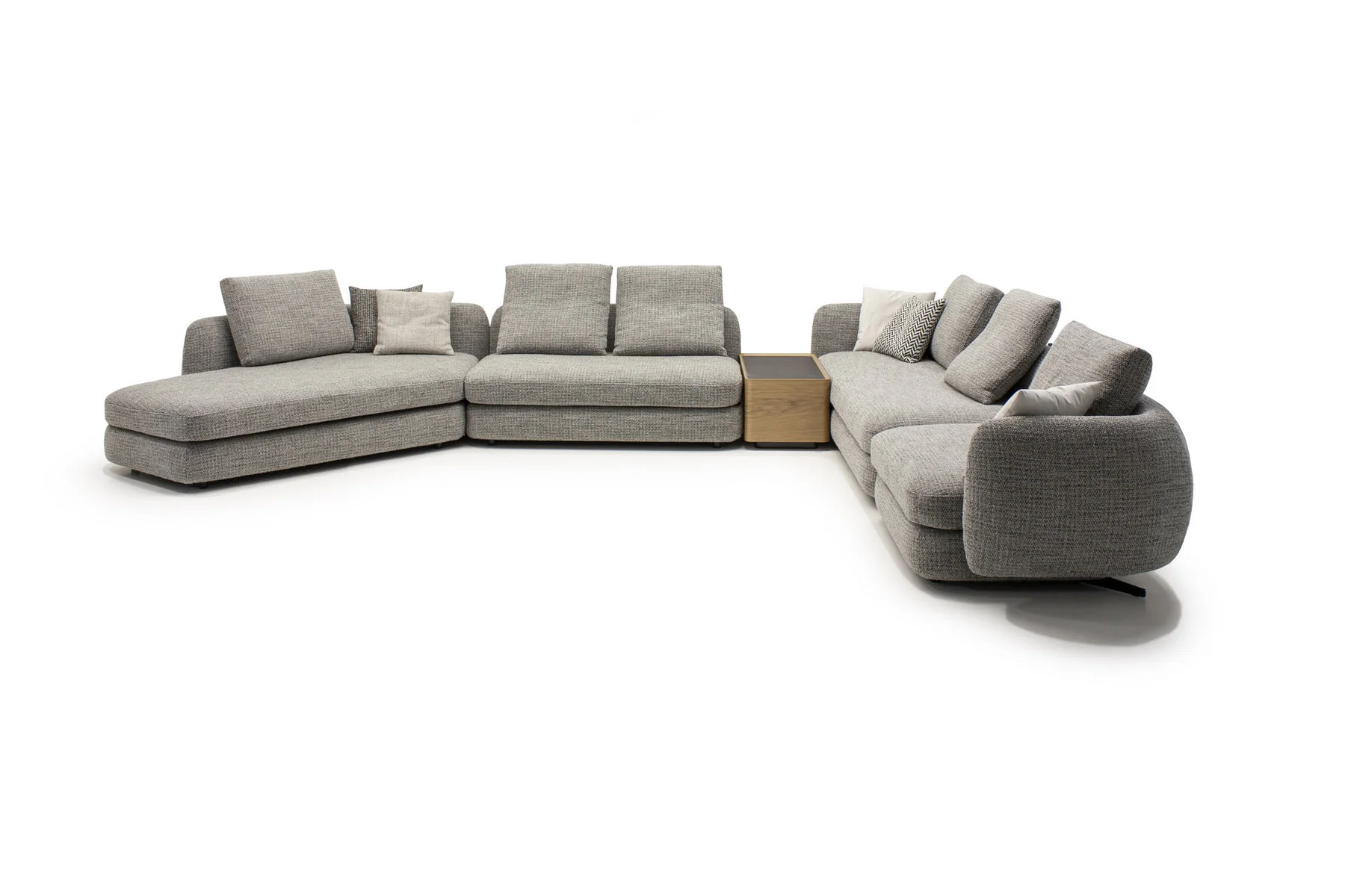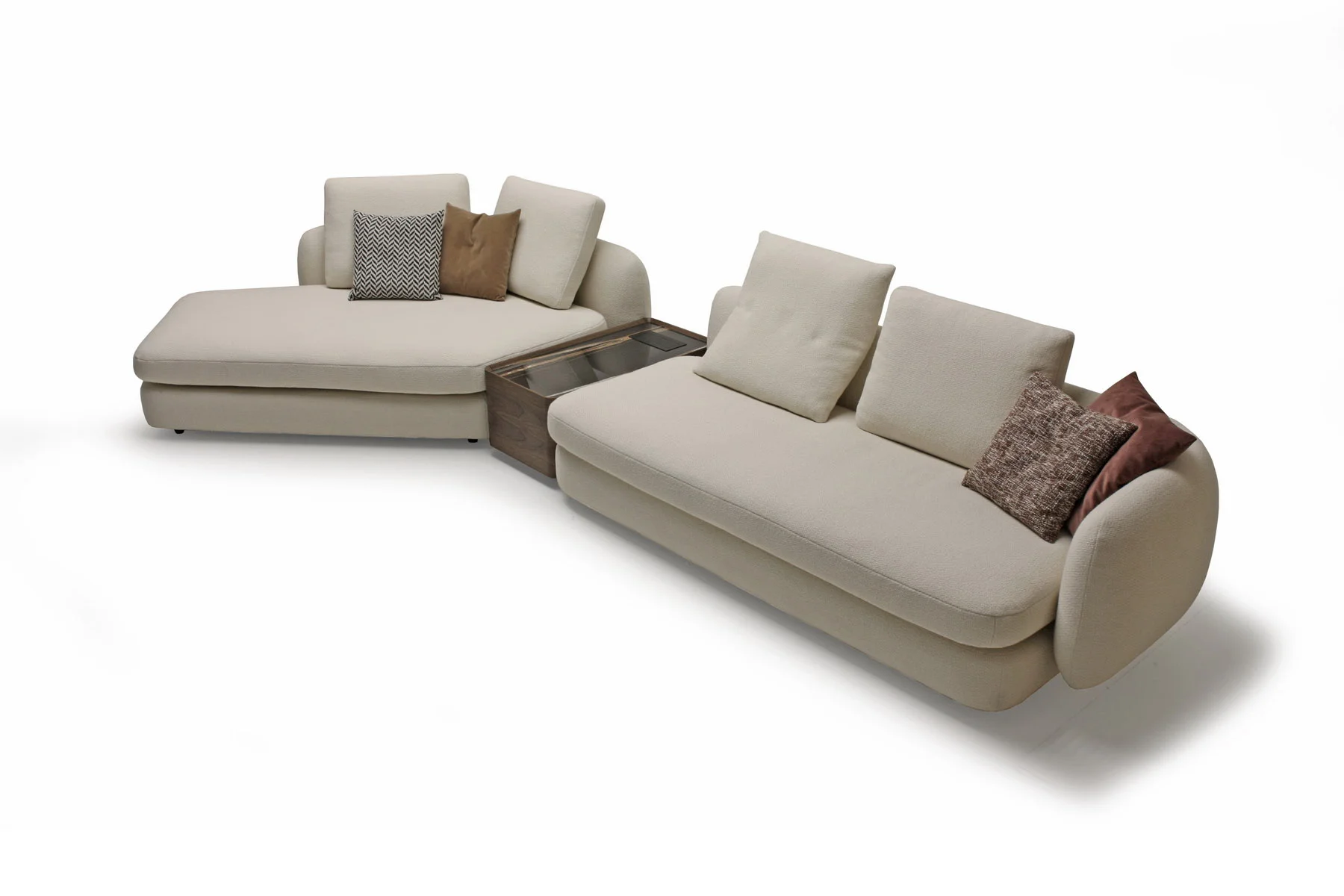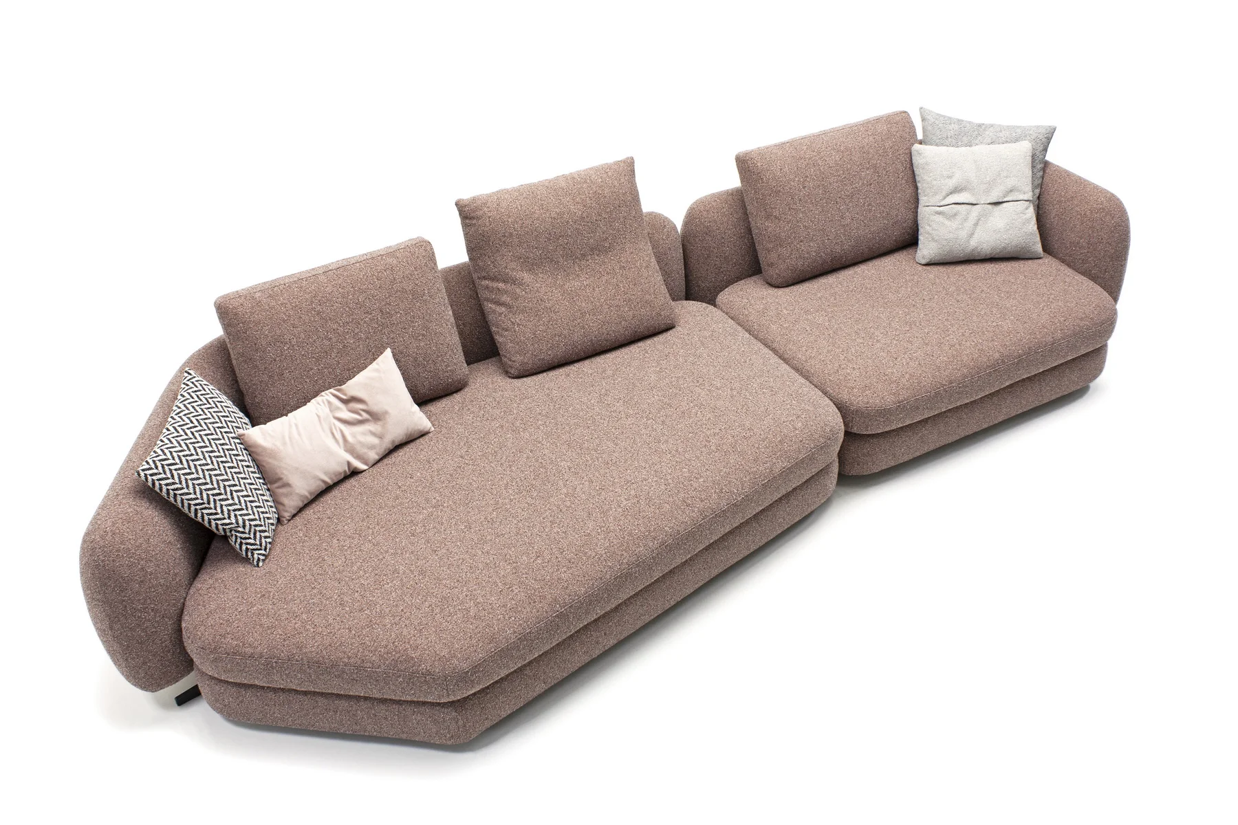 Форма сиденья сочетает трапеции и классические прямоугольники со скругленными деталями. Деликатная изысканность – это то, что позволяет ему принимать различные очертания и размеры, не утрачивая своей элегантности и функциональности. Модули дивана изысканных форм с разной глубиной очень комфортны и эргономичны.