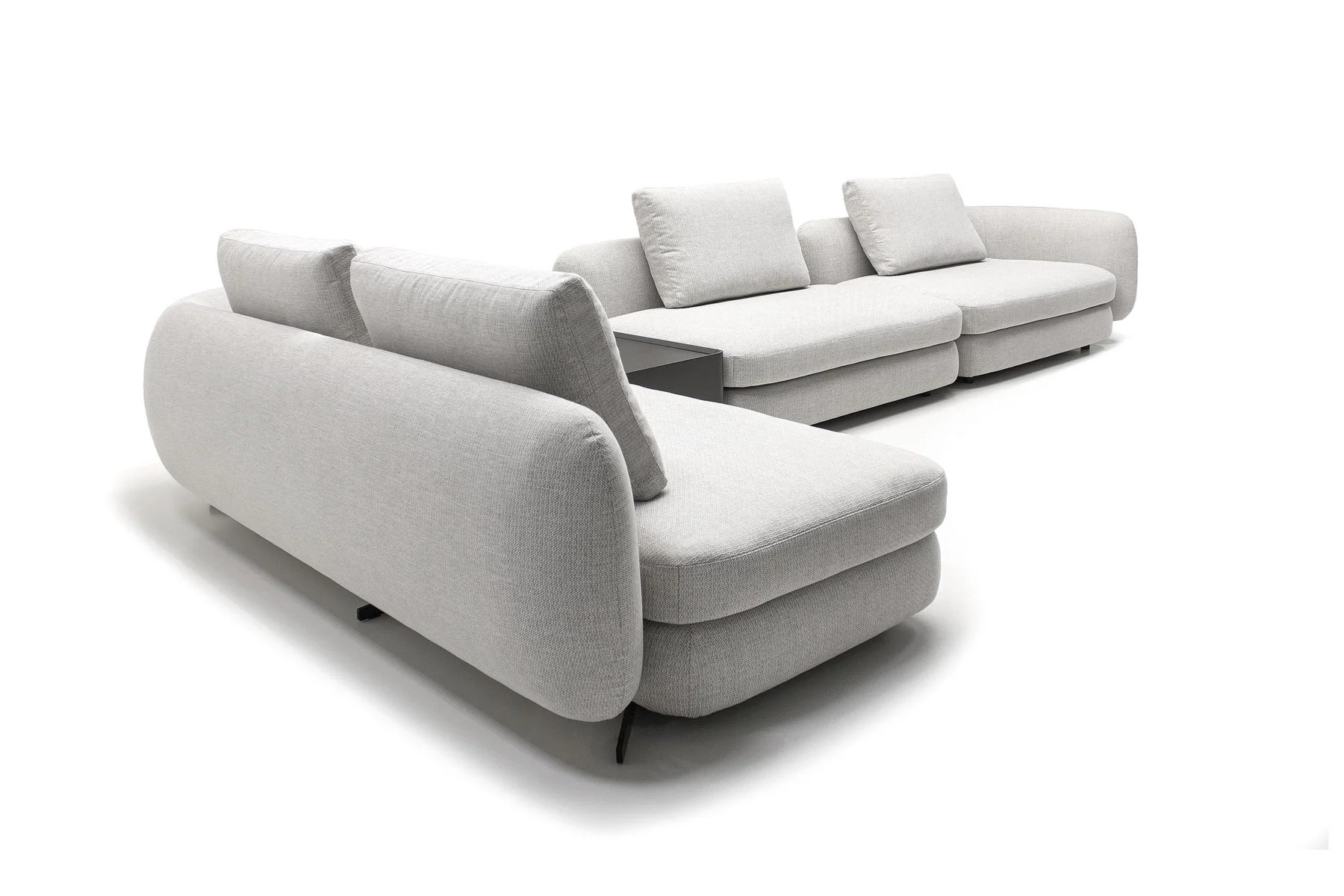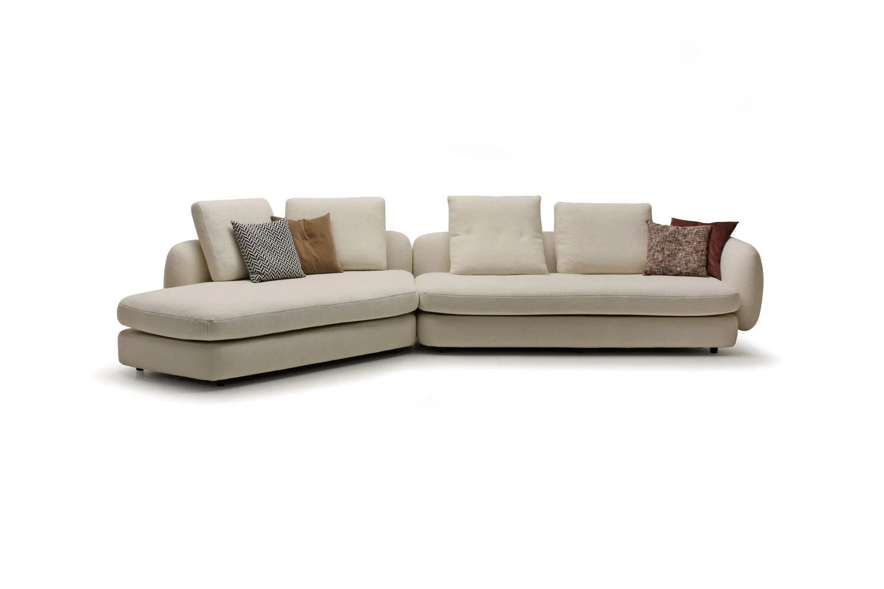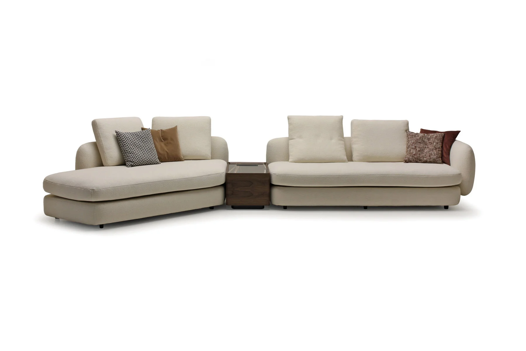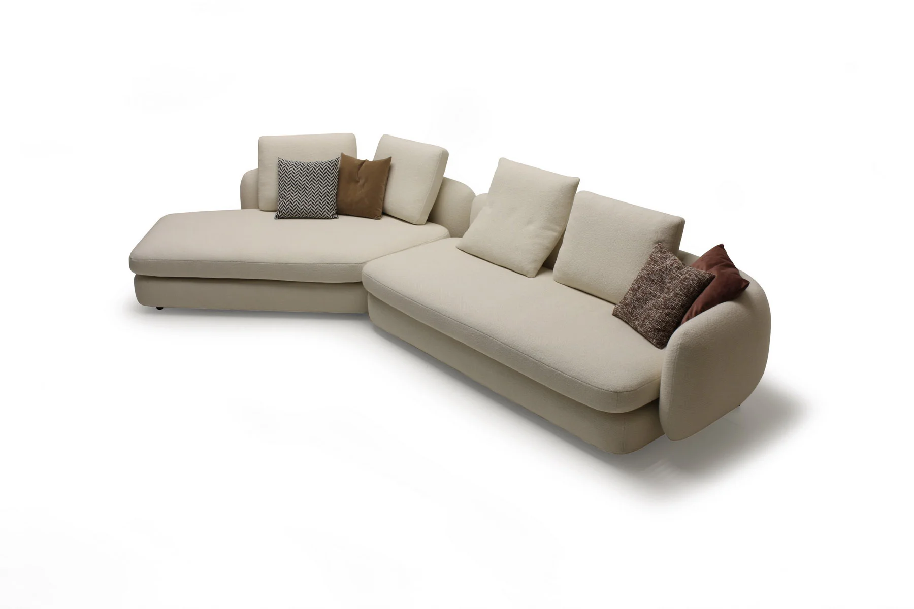 Форма сиденья сочетает трапеции и классические прямоугольники со скругленными деталями. Деликатная изысканность – это то, что позволяет ему принимать различные очертания и размеры, не утрачивая своей элегантности и функциональности. Модули дивана изысканных форм с разной глубиной очень комфортны и эргономичны.