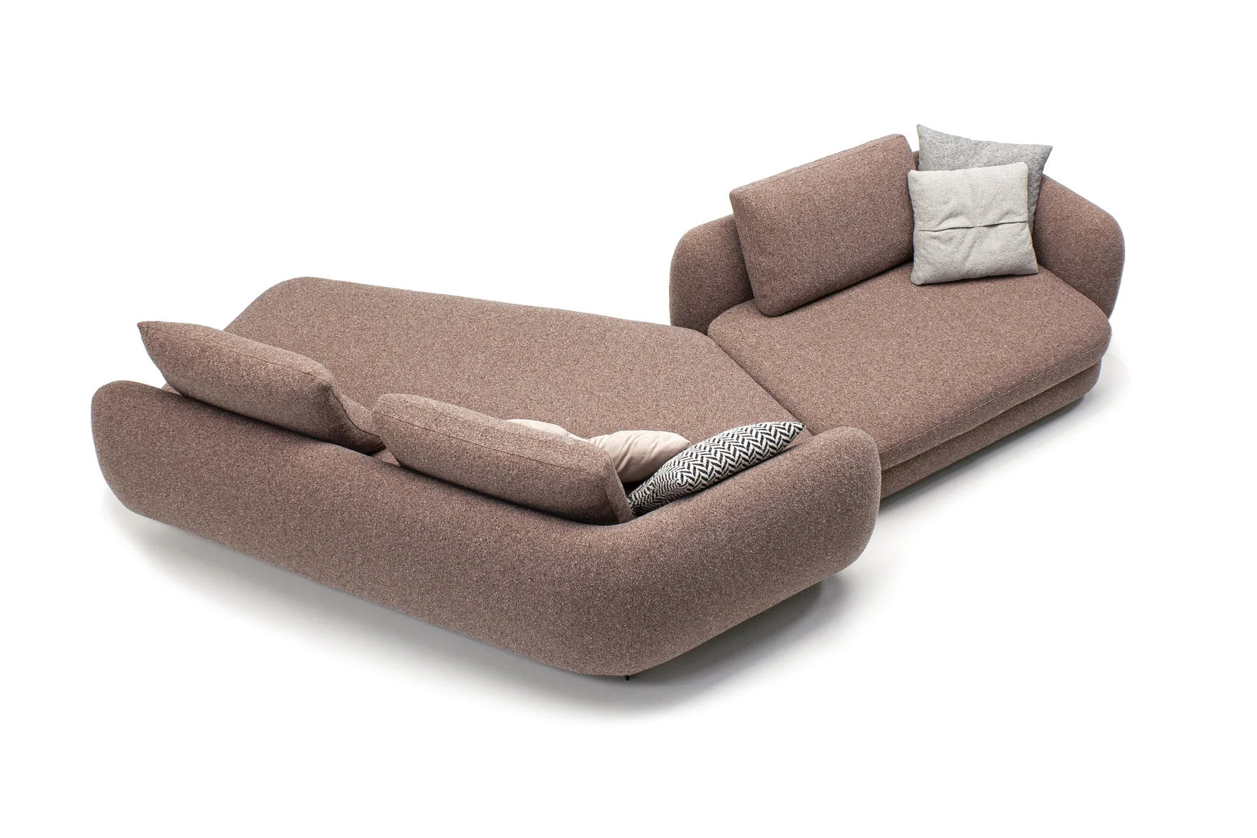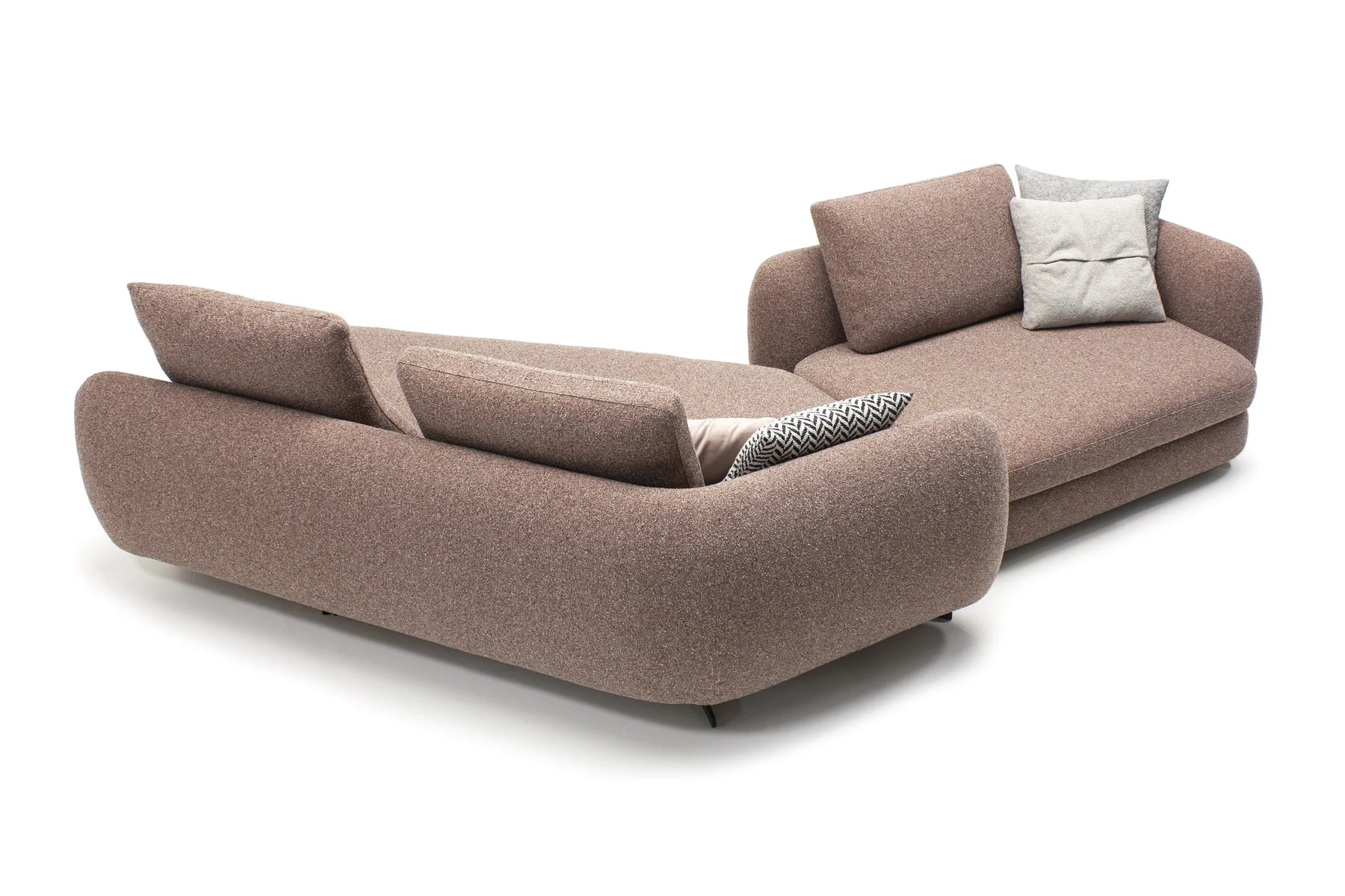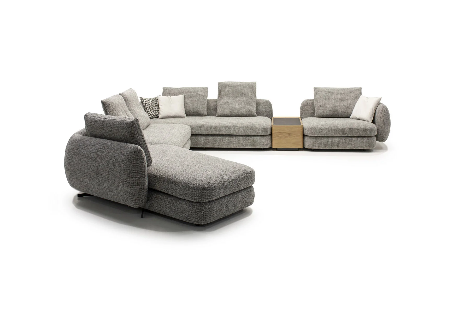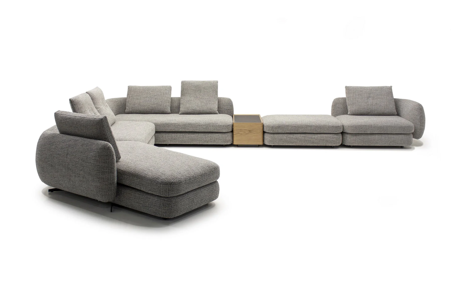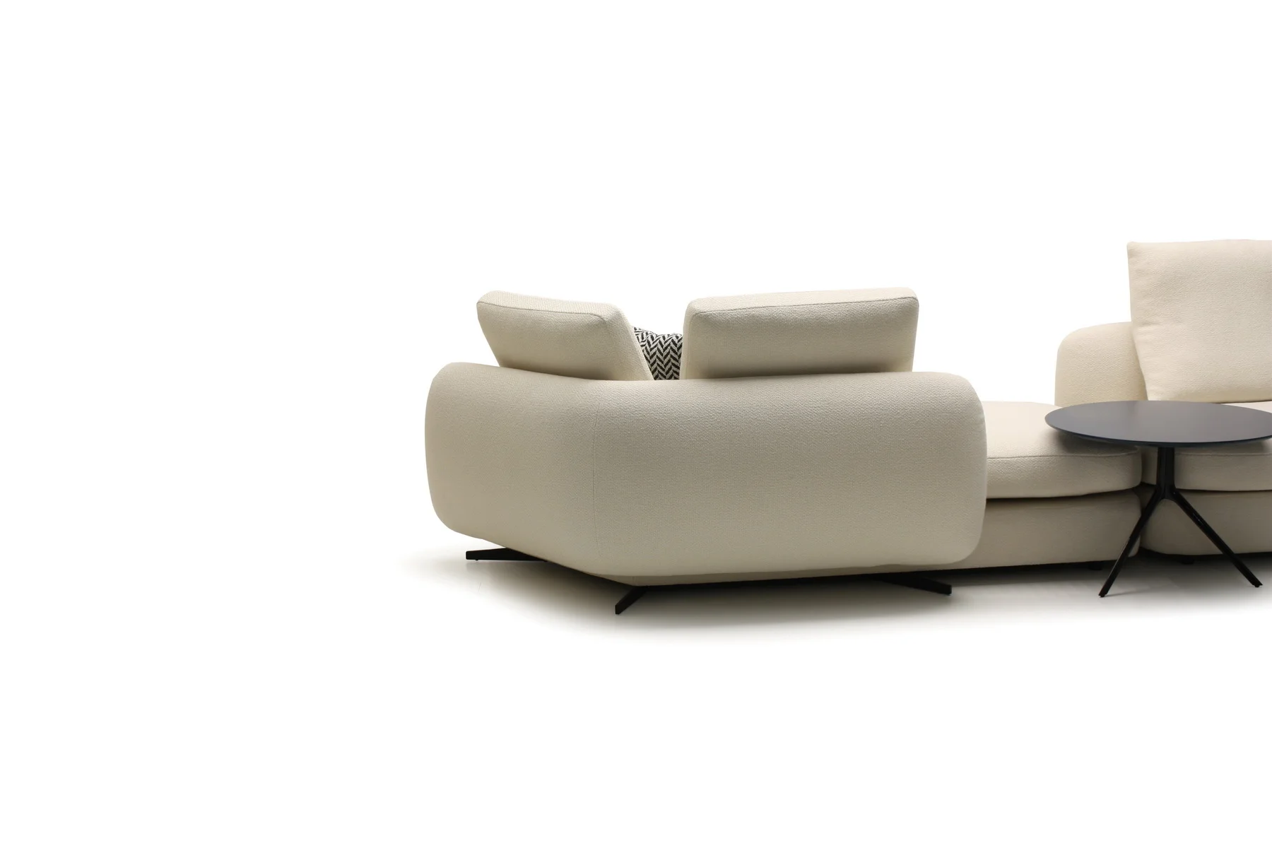 Форма сиденья сочетает трапеции и классические прямоугольники со скругленными деталями. Деликатная изысканность – это то, что позволяет ему принимать различные очертания и размеры, не утрачивая своей элегантности и функциональности. Модули дивана изысканных форм с разной глубиной очень комфортны и эргономичны.