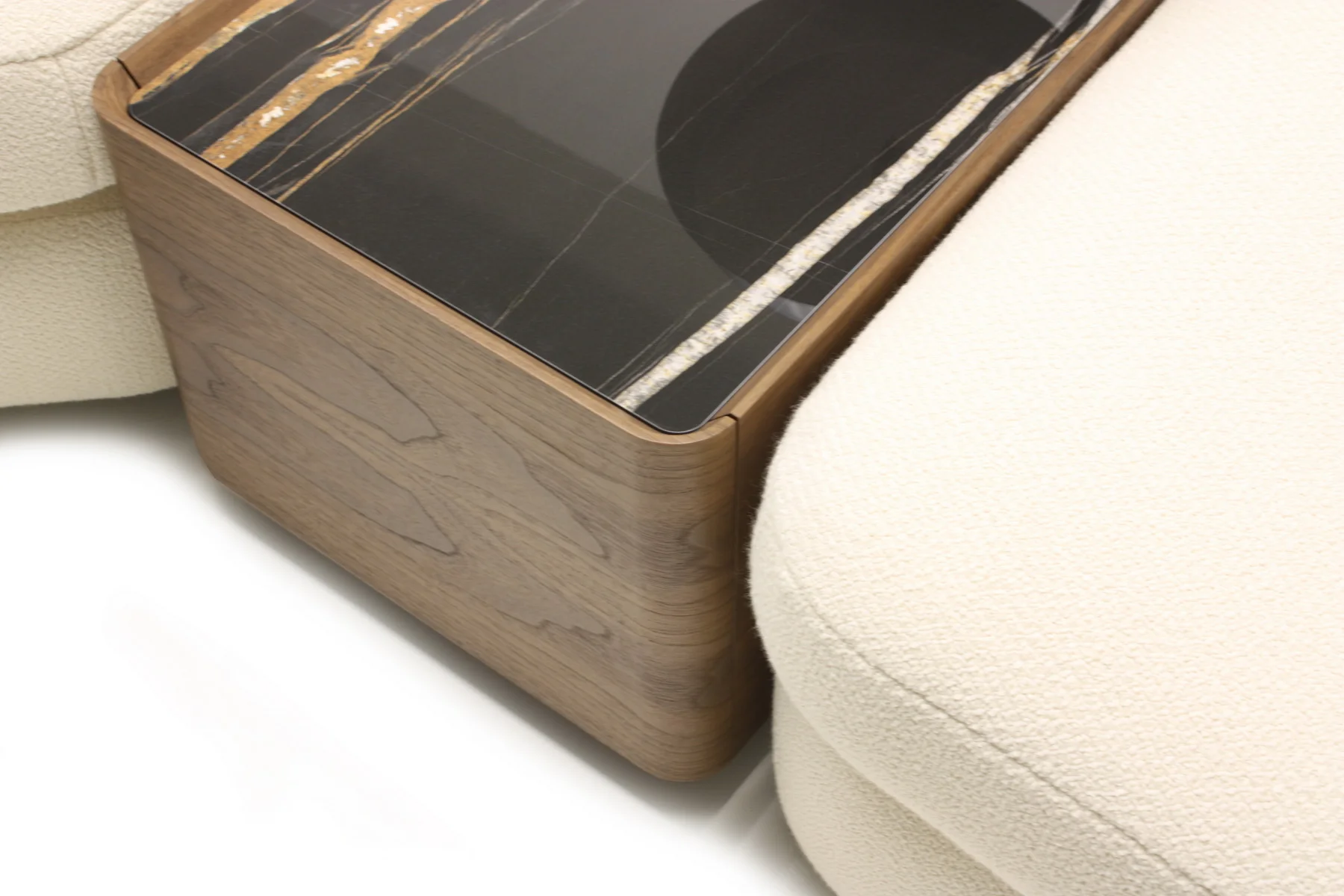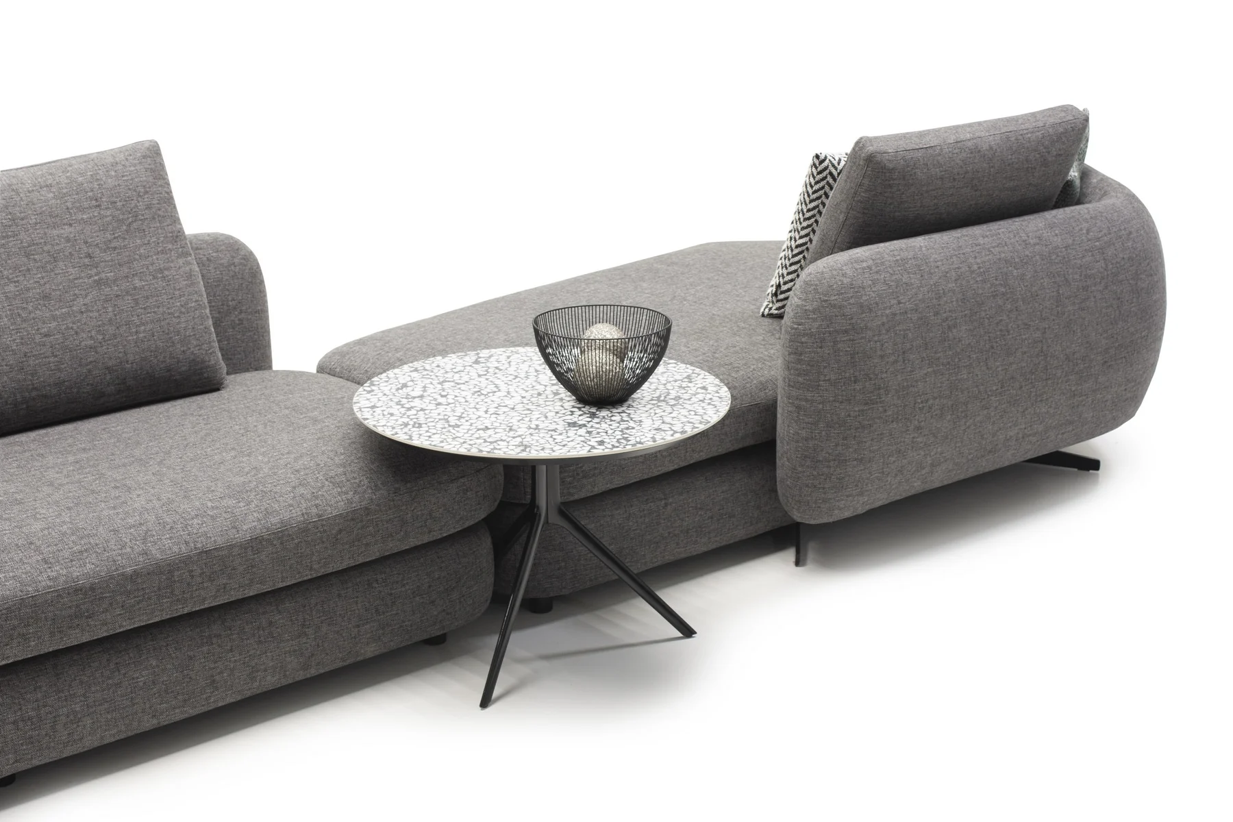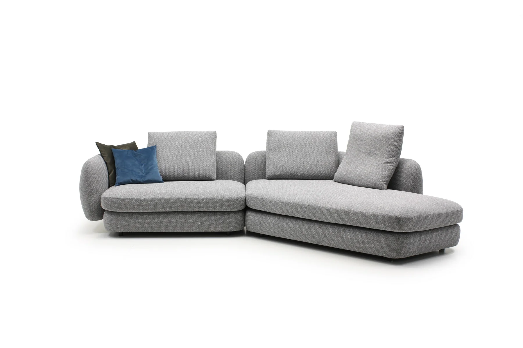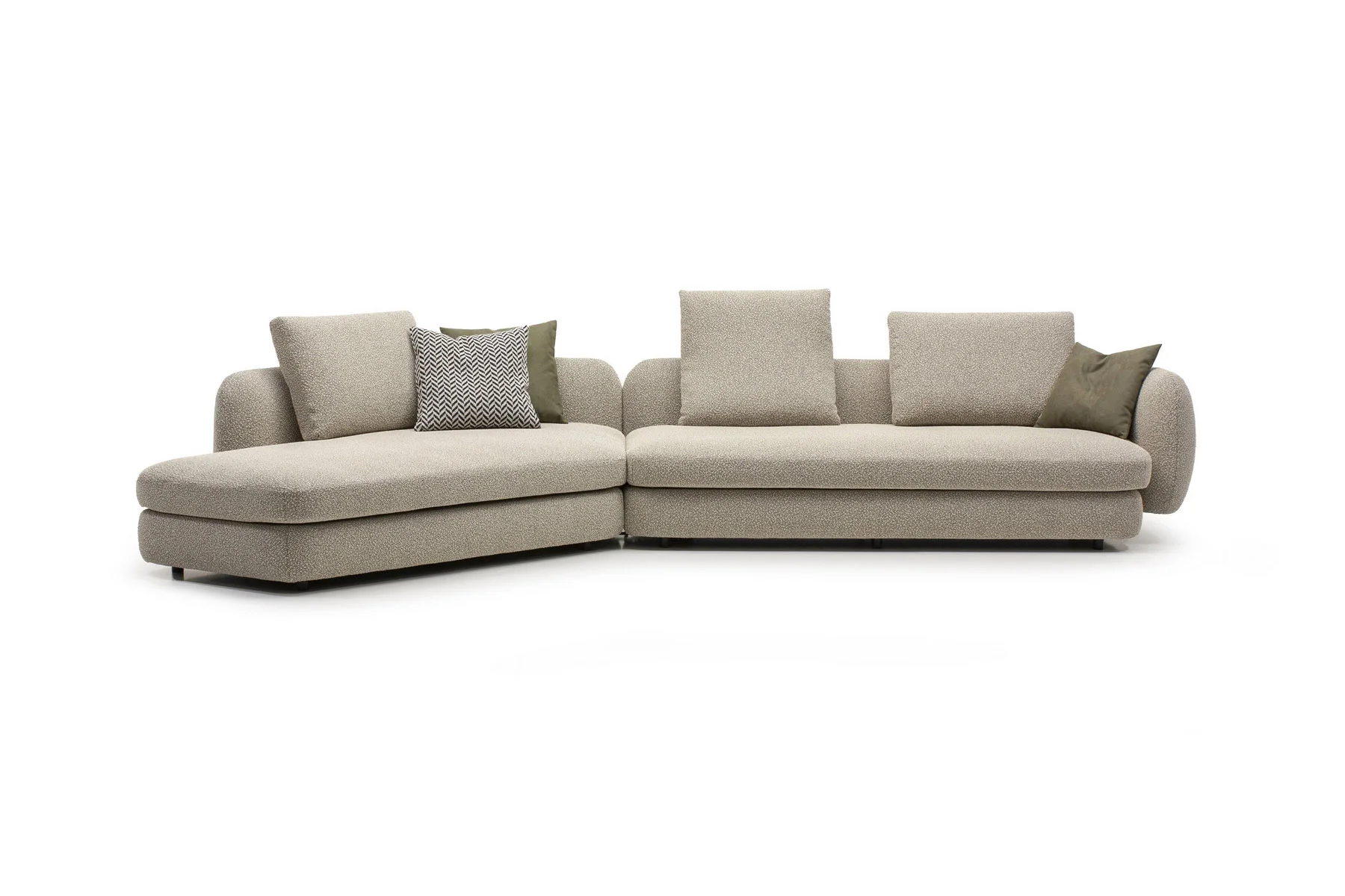 Форма сиденья сочетает трапеции и классические прямоугольники со скругленными деталями. Деликатная изысканность – это то, что позволяет ему принимать различные очертания и размеры, не утрачивая своей элегантности и функциональности. Модули дивана изысканных форм с разной глубиной очень комфортны и эргономичны.